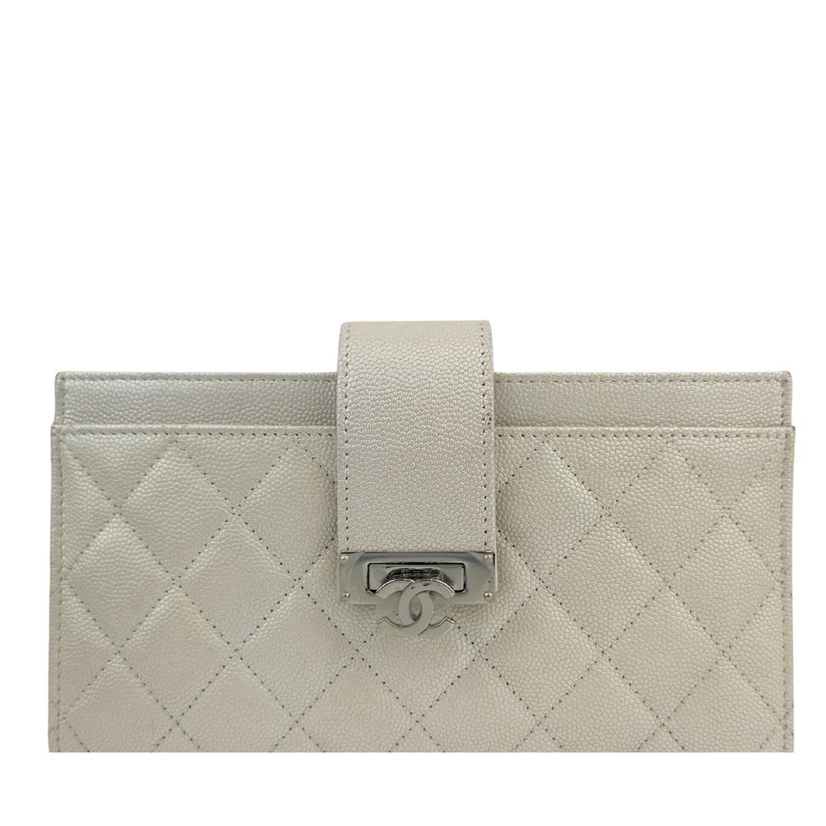 Chanel AP0154 White Caviar Leather Pouch with Interlocking CC SHW