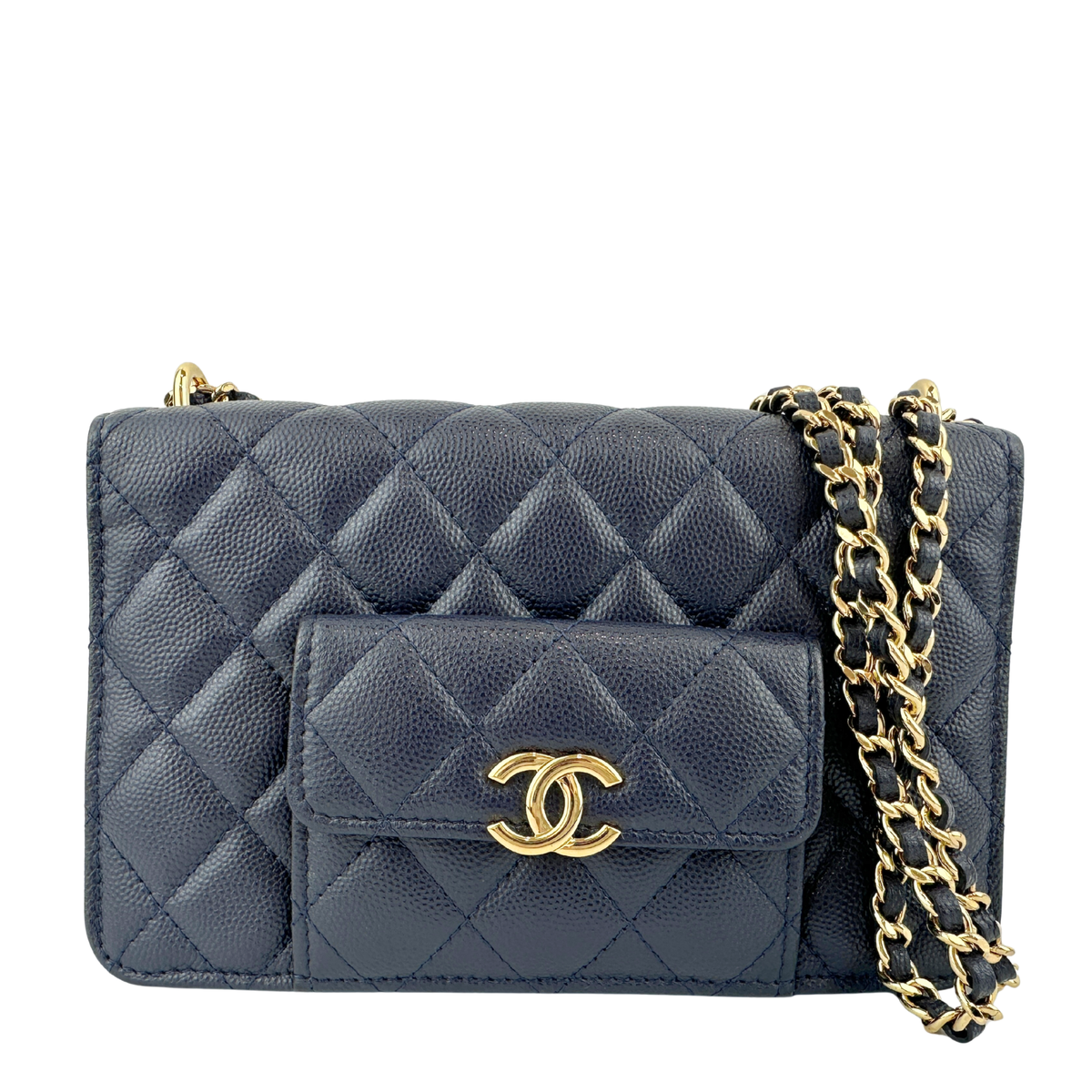 Chanel 22A Pocket Twins Navy Caviar Wallet on Chain GHW