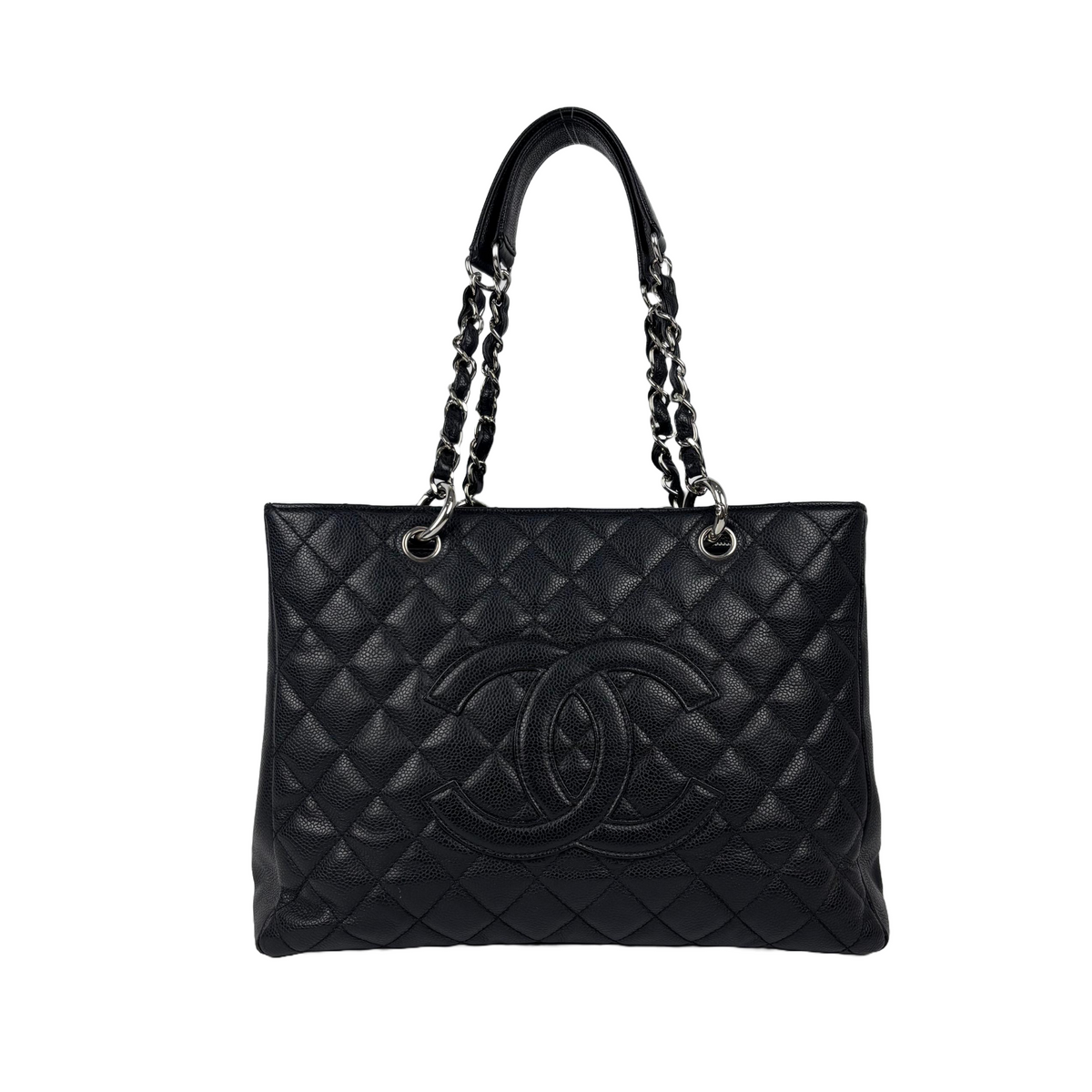 Chanel Quilted Caviar Leather Timeless CC Soft Shopping Tote in Black SHW