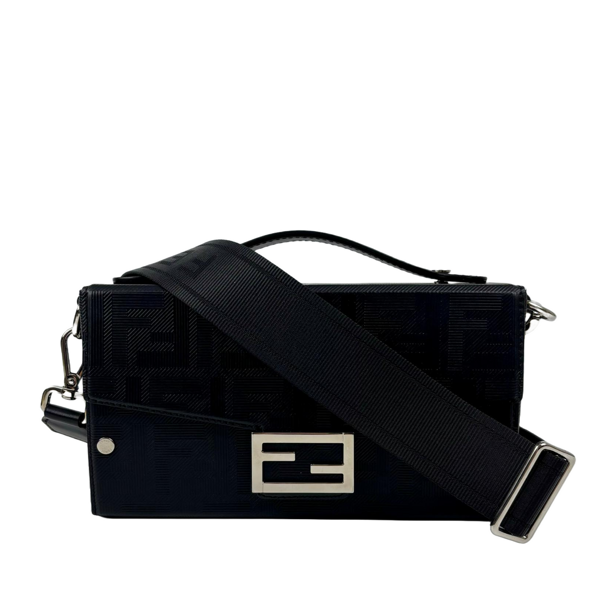 Fendi Large Zucca Embossed Baguette Convertible Belt Bag Black Nappa