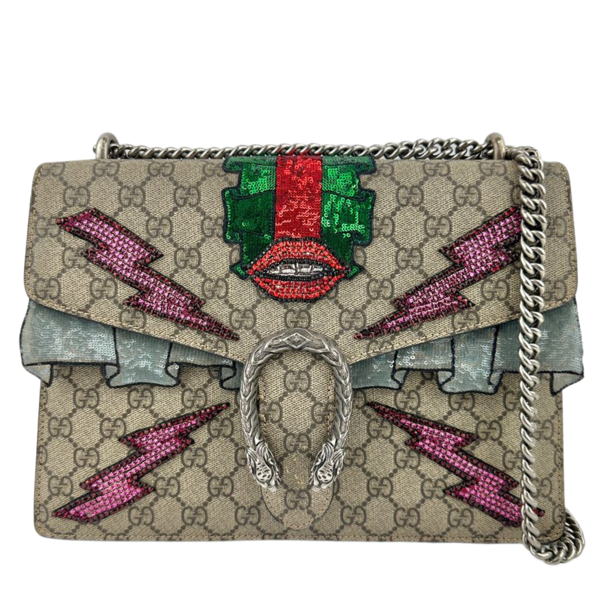 Gucci Medium Dionysus GG Supreme Beige Embroidered Sequin Shoulder Bag