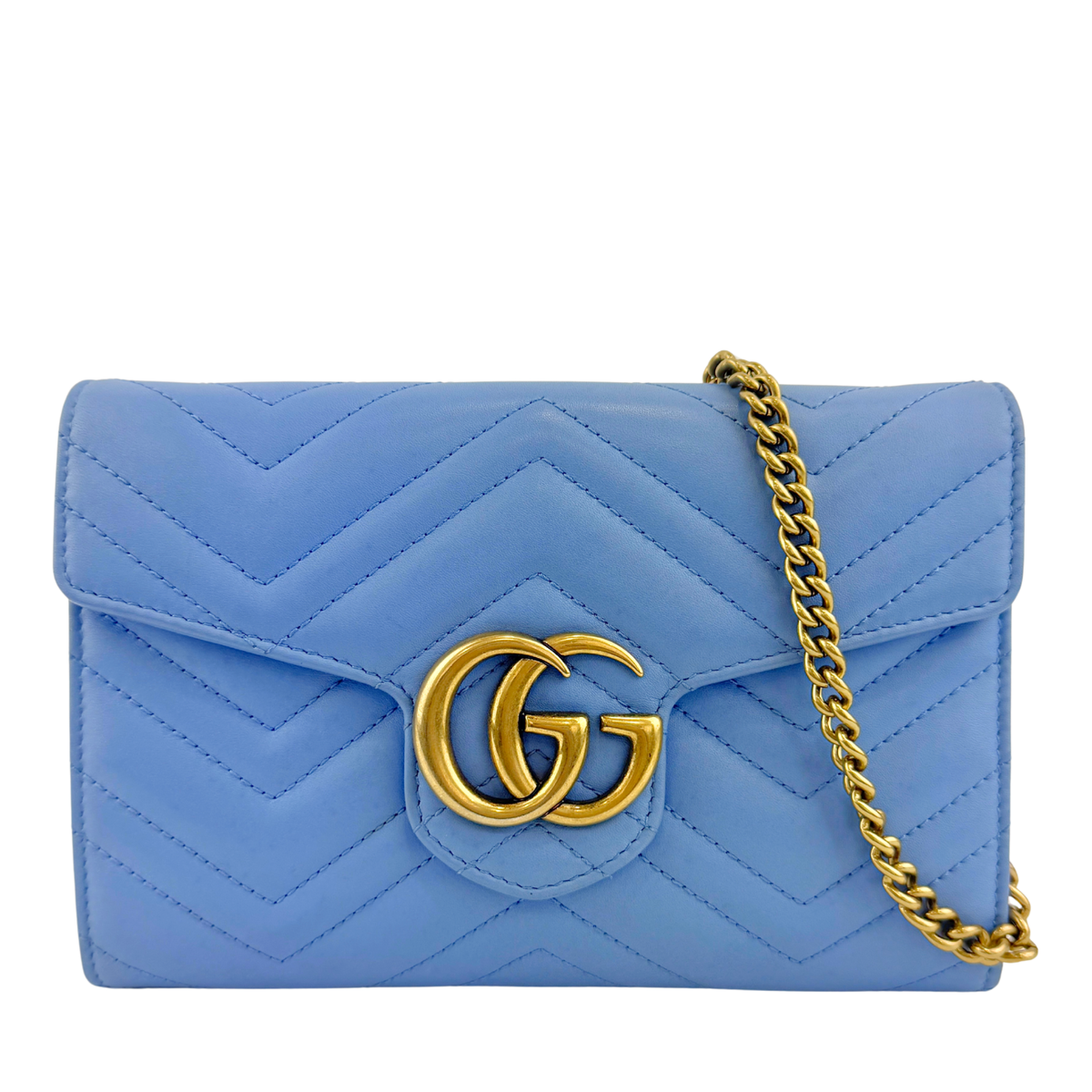Gucci GG Marmont Matelasse Leather Chain Wallet in Light Blue