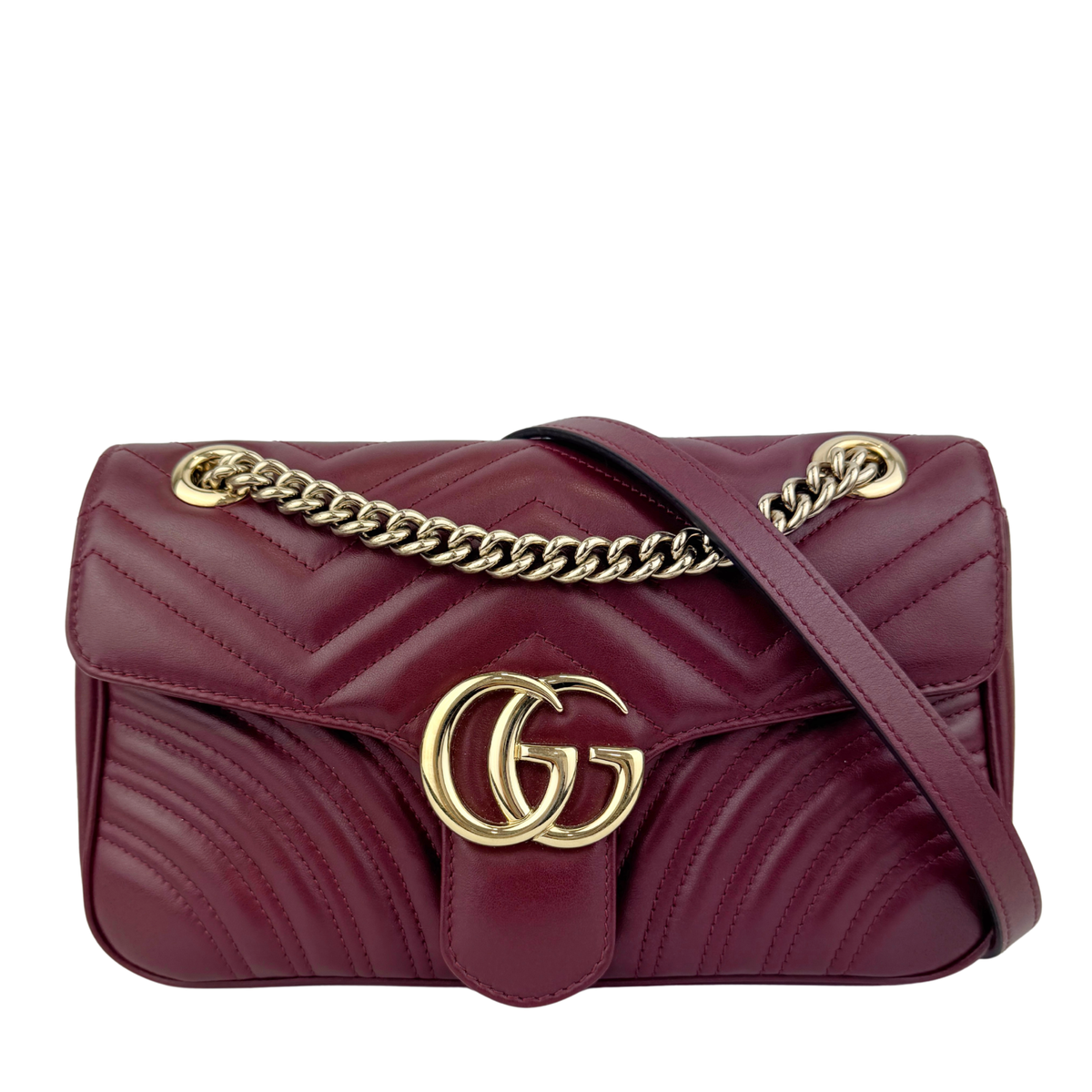 Gucci Burgundy Quilted Leather GG Marmont Small Matelasse Shoulder Bag