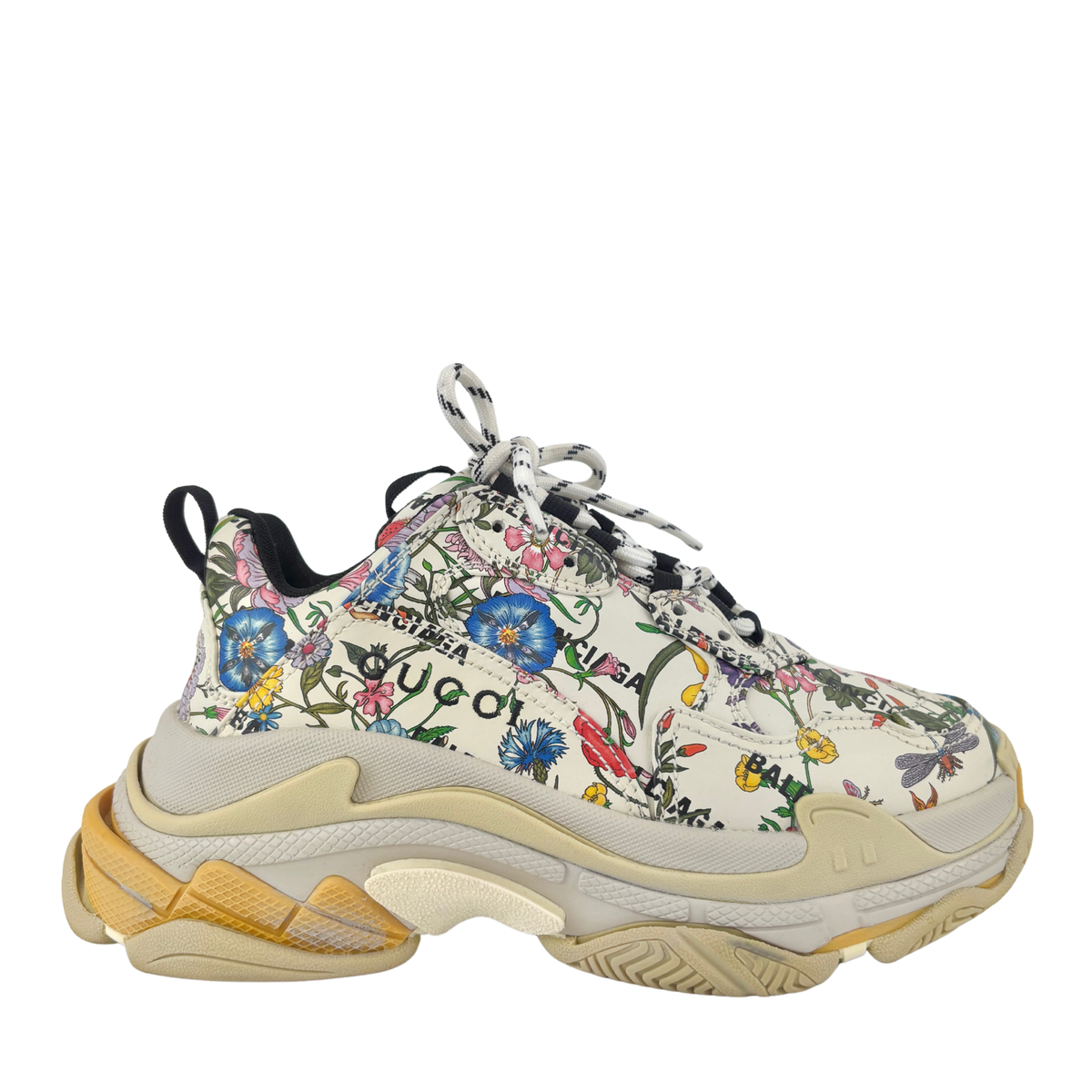 Gucci x Balenciaga Cream Floral Print Leather The Hacker Project Triple S Sneakers