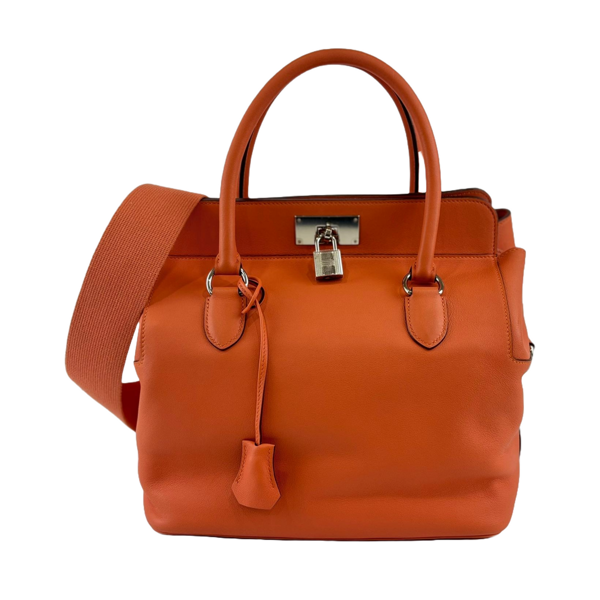 Hermes Herbag 31 Orange Mécano Berlin Coated Canvas Fauve Vache Hunter Leather and Ecrù Toile H Canvas PHW
