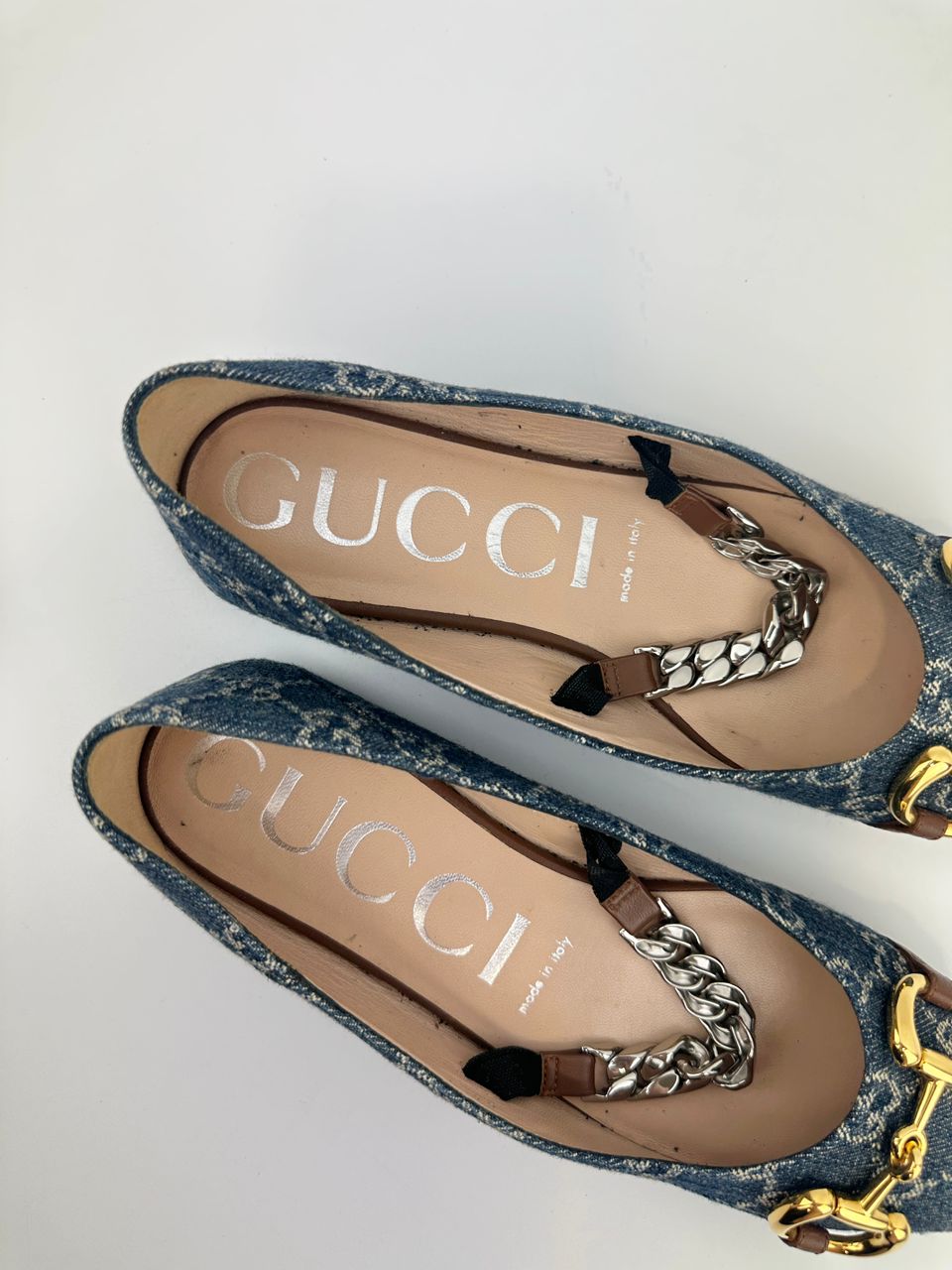 GG Denim Horsebit Blue Ballet Flats Size 38.5