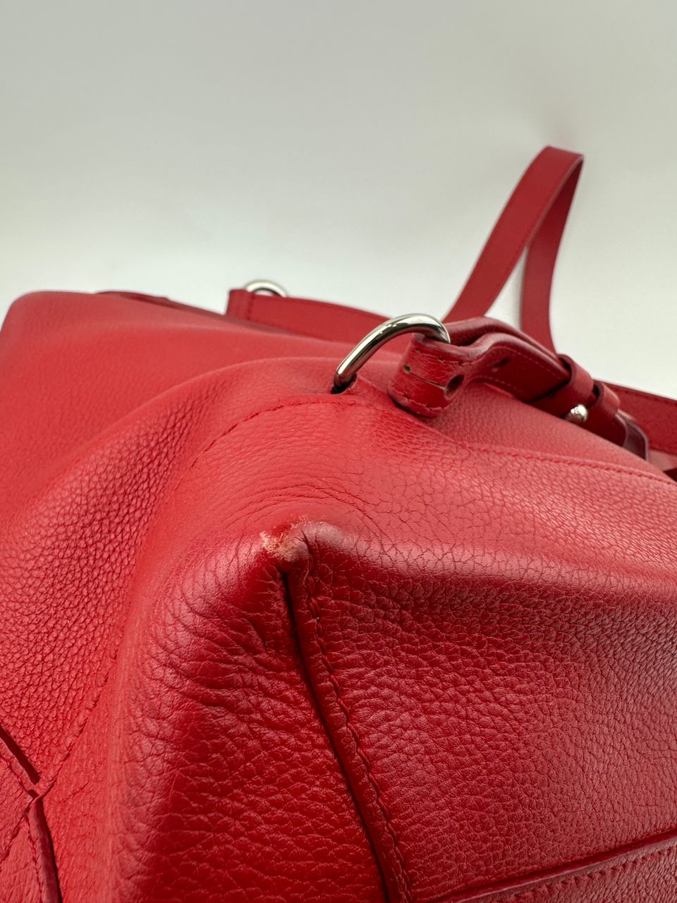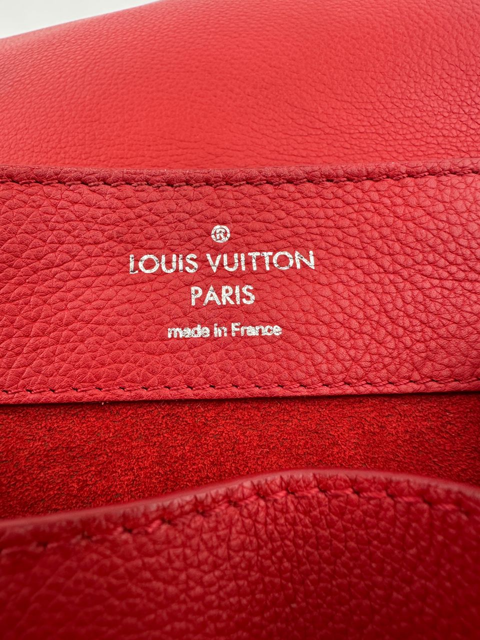 This Louis Vuitton Lockme Backpack in vibrant red calfskin leather showcases refined craftsmanship and practical elegance. Designed with a secure front flap closure, leather draw-string detailing, dual adjustable straps plus a top handle, it balances hands-free ease with polished form. Ideal for carrying essentials in style while staying true to the LV aesthetic.