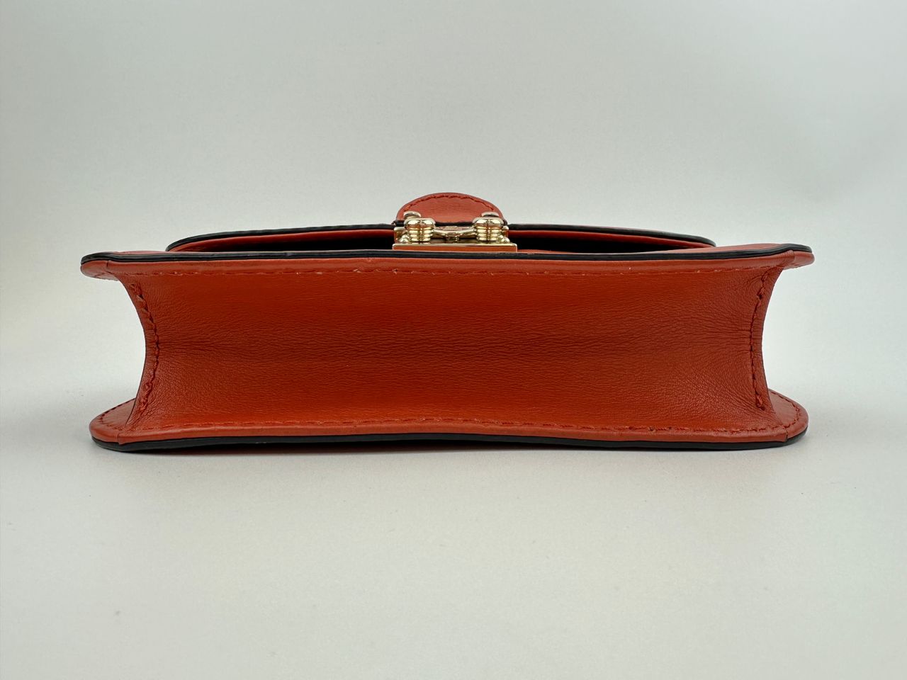 Elevate your everyday elegance with this petite leather flap bag, crafted in a striking orange hue that commands attention. The secure lock closure ensures your essentials remain protected while adding a refined touch of vintage-inspired design. Perfectly proportioned for the discerning traveler, this compact silhouette transitions seamlessly from day to evening, whether slung across your body or carried by hand.