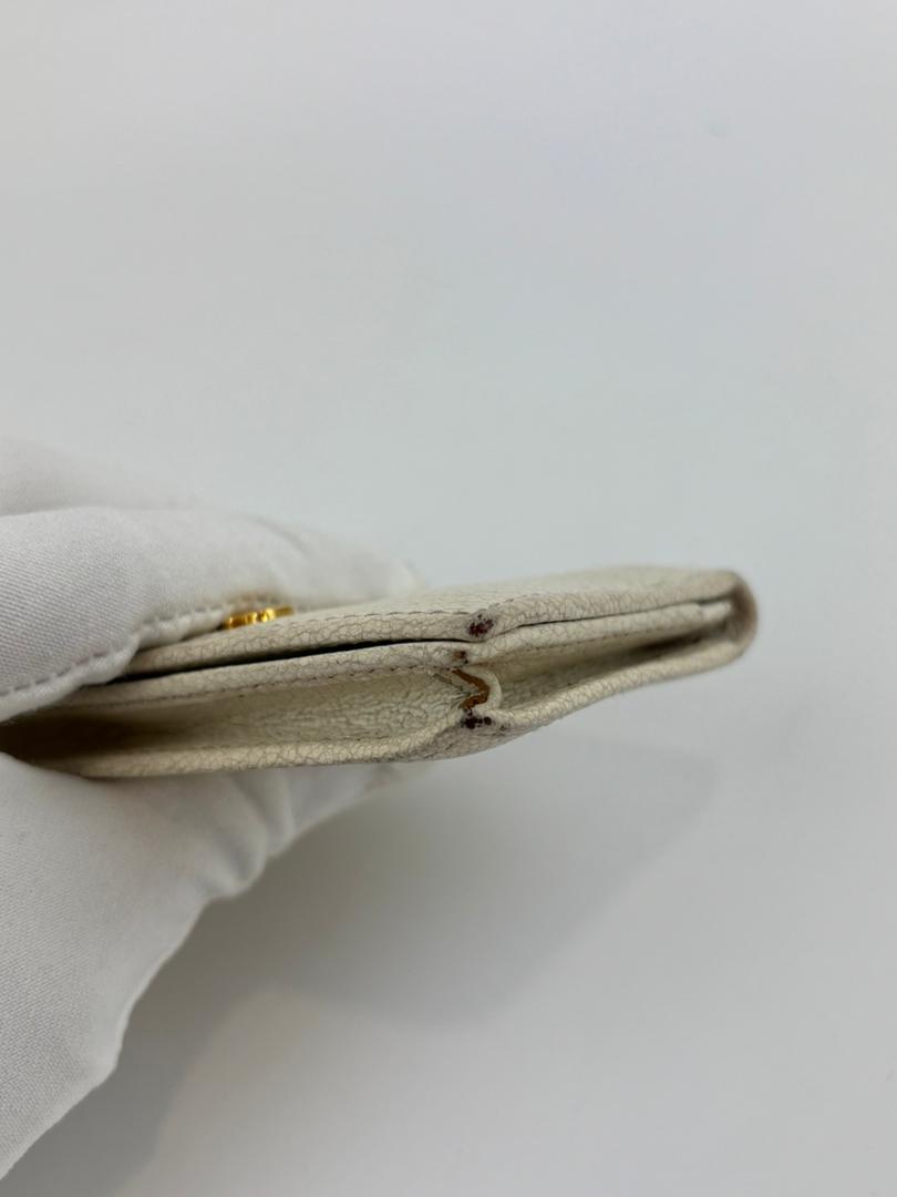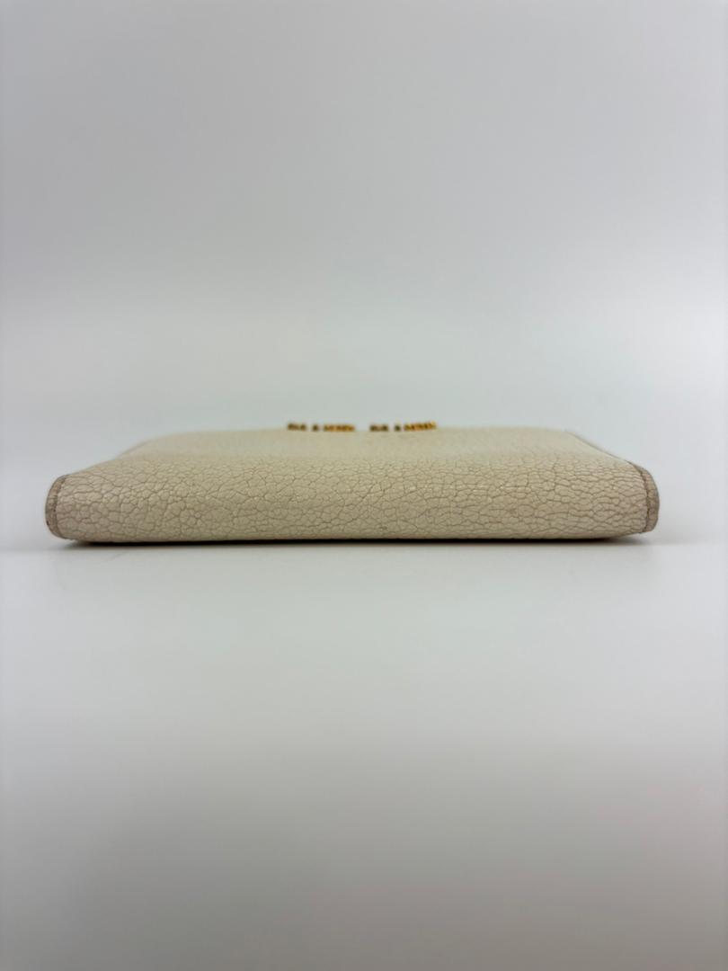 Elevate your essentials with the Miu Miu 5M1122 Madras Bifold Card Holder in Bianco. Crafted from premium textured leather, its refined bifold design offers a sleek and elegant way to organize cards. The crisp white hue adds a subtle yet sophisticated touch, perfect for those who appreciate understated luxury. Compact and functional, it slips effortlessly into pockets or bags, combining practicality with timeless style.