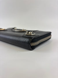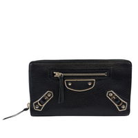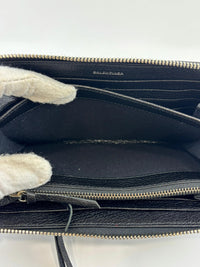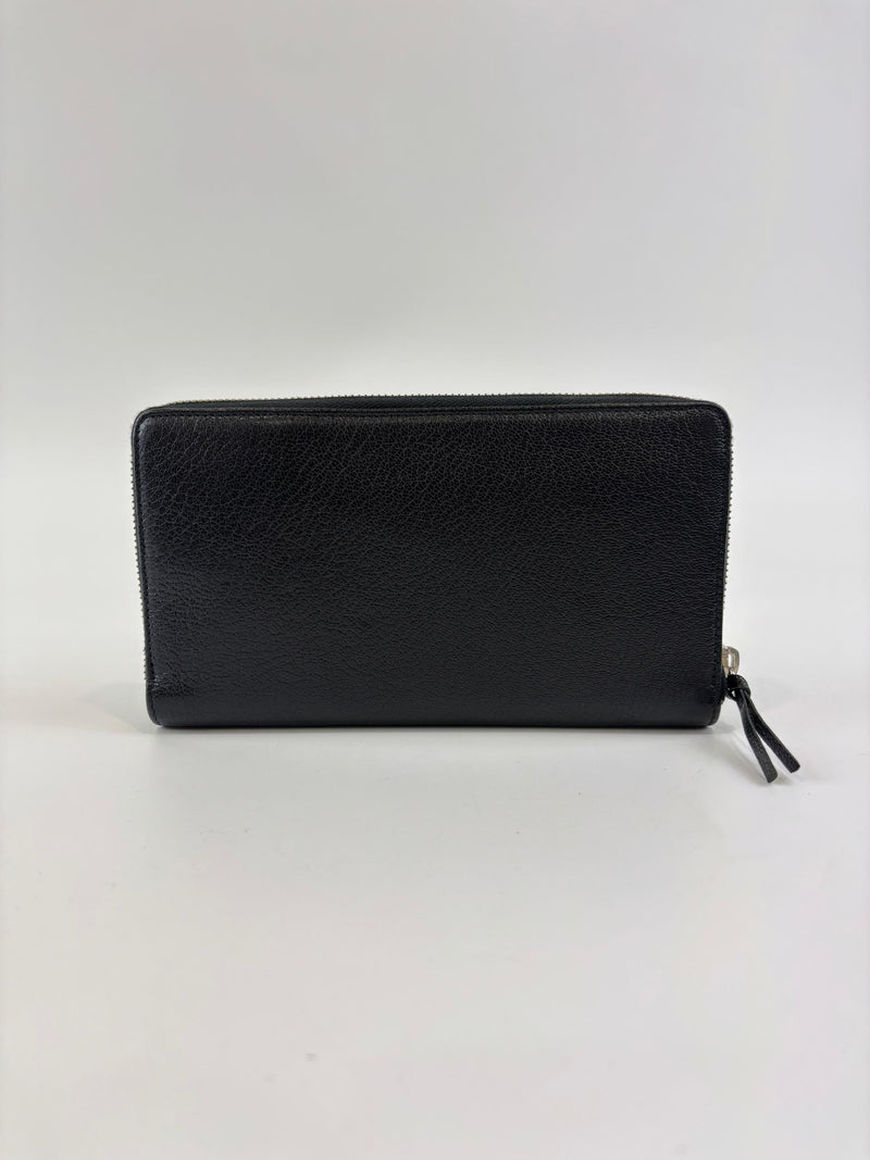 Metallic Edge Continental Zip Around Wallet Black Grained Chevre Leather