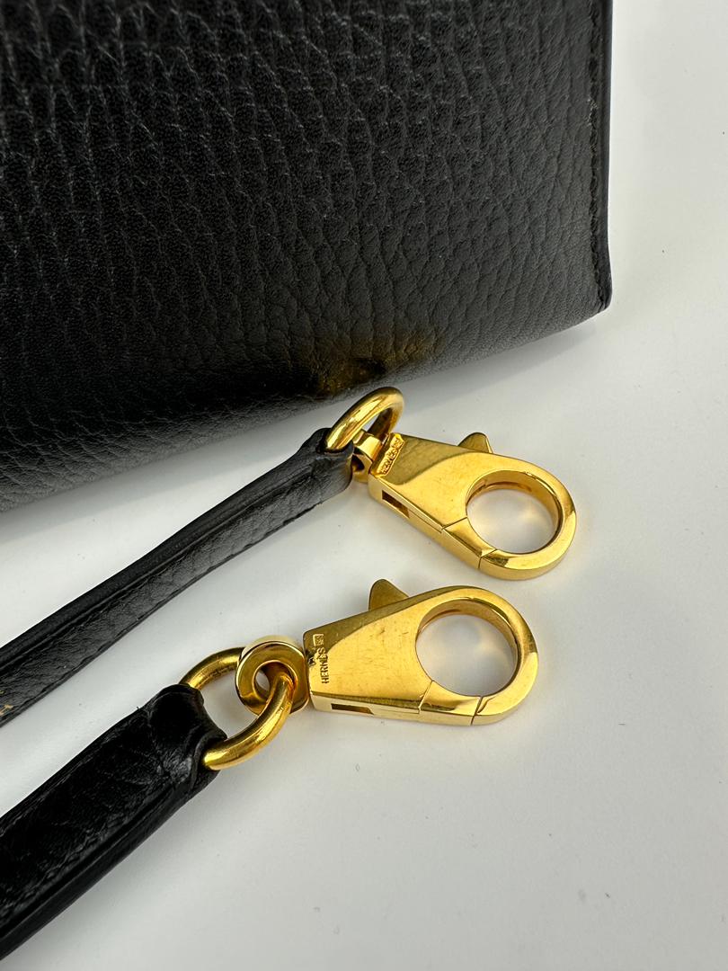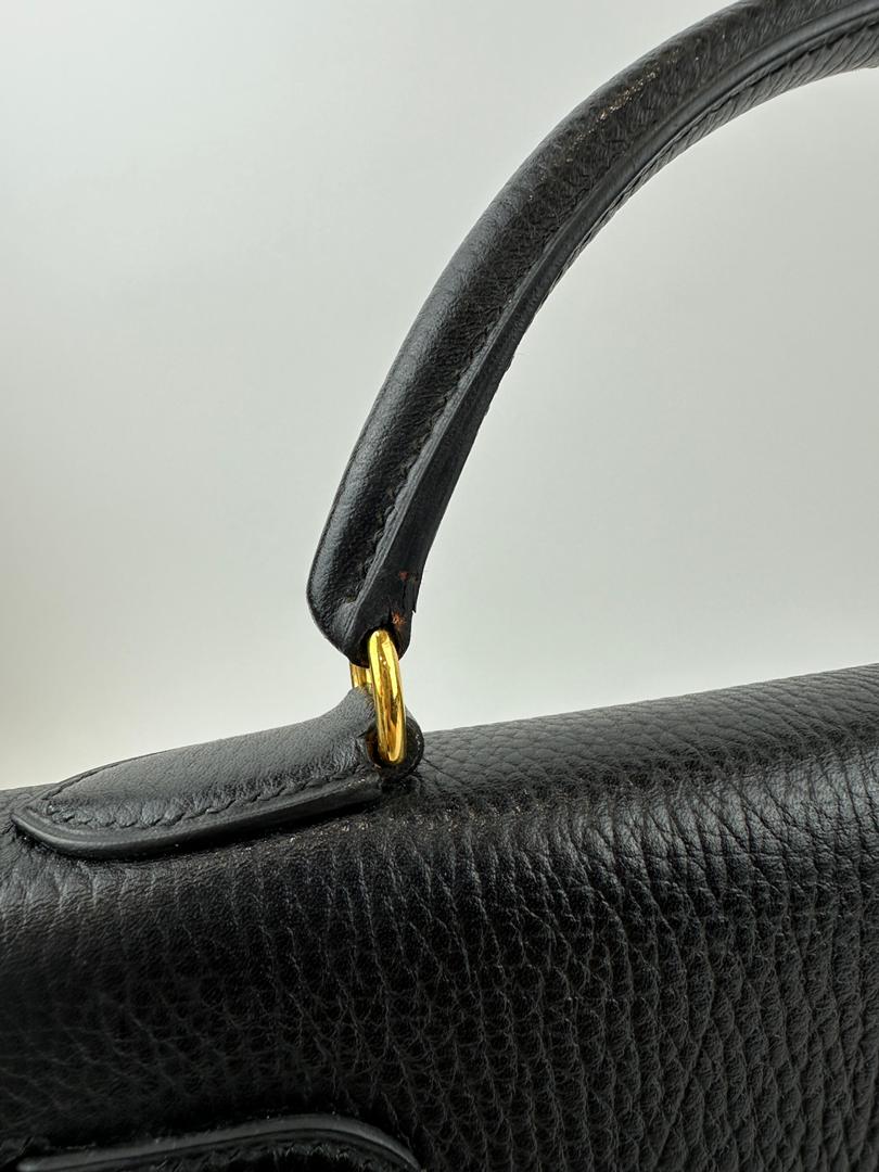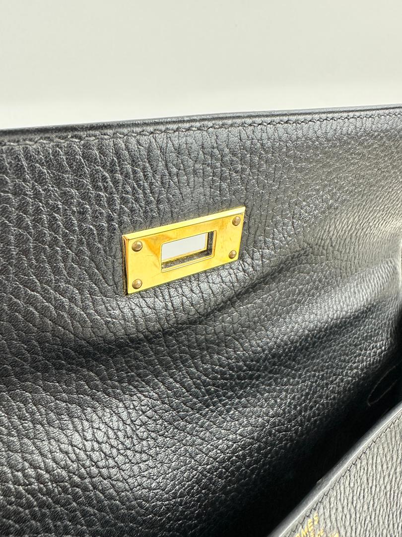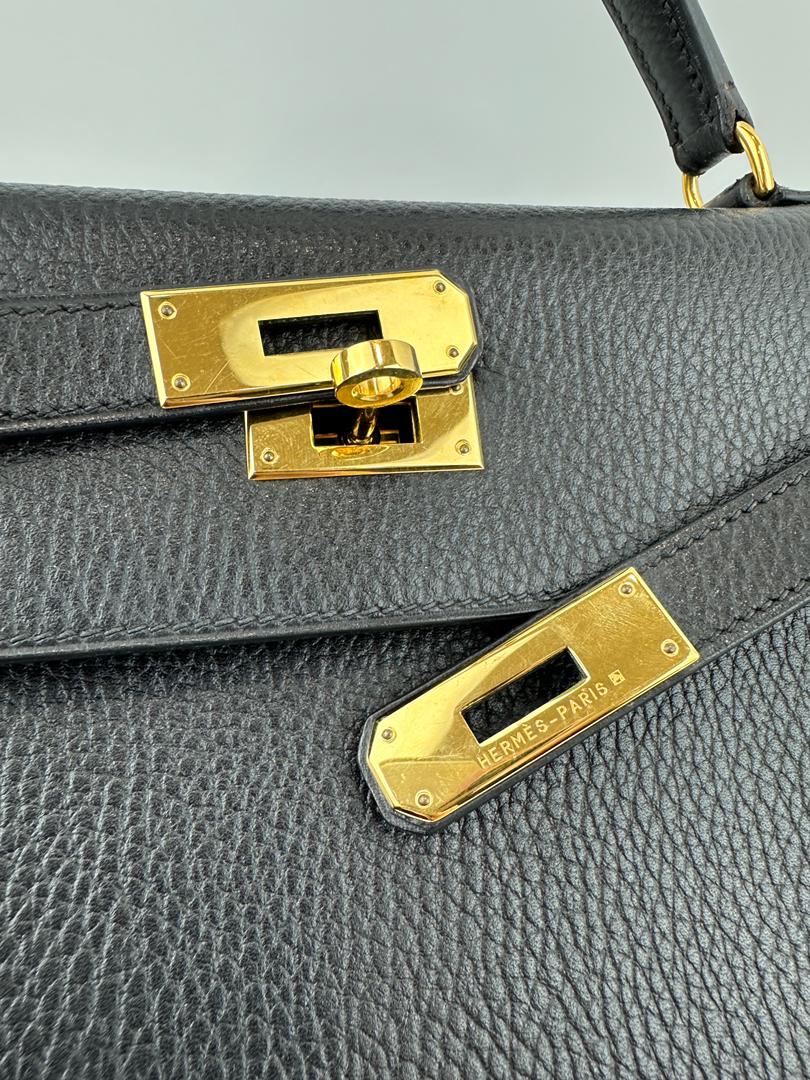 The Hermès Kelly Sellier 32 in Black Ardennes leather with Gold Hardware is a rare and highly sought-after piece prized for its exceptional durability. Crafted for those who appreciate vintage Hermès, its structured silhouette and resilient leather ensure timeless elegance that withstands daily wear. This iconic handbag blends sophistication with practicality, making it an enduring choice for collectors and style connoisseurs alike.