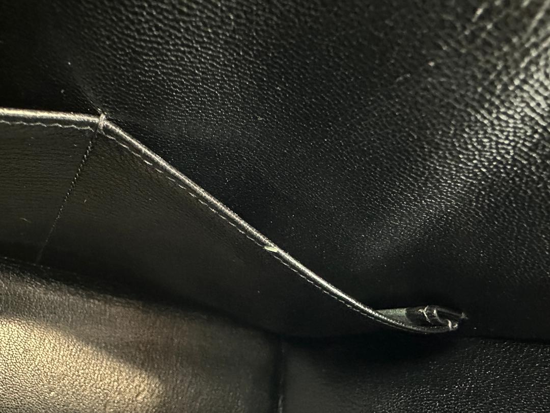 Remarks: Used in good condition; some signs of use. Sent to spa for cleaning. Hairline scratches on hardware, pressed marks on interior base, minor loose grain on interior leather, scratches on metal feet, tarnished zipper pull.