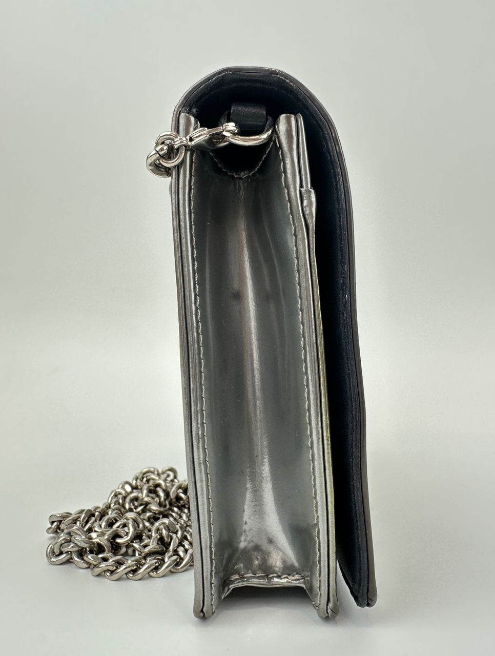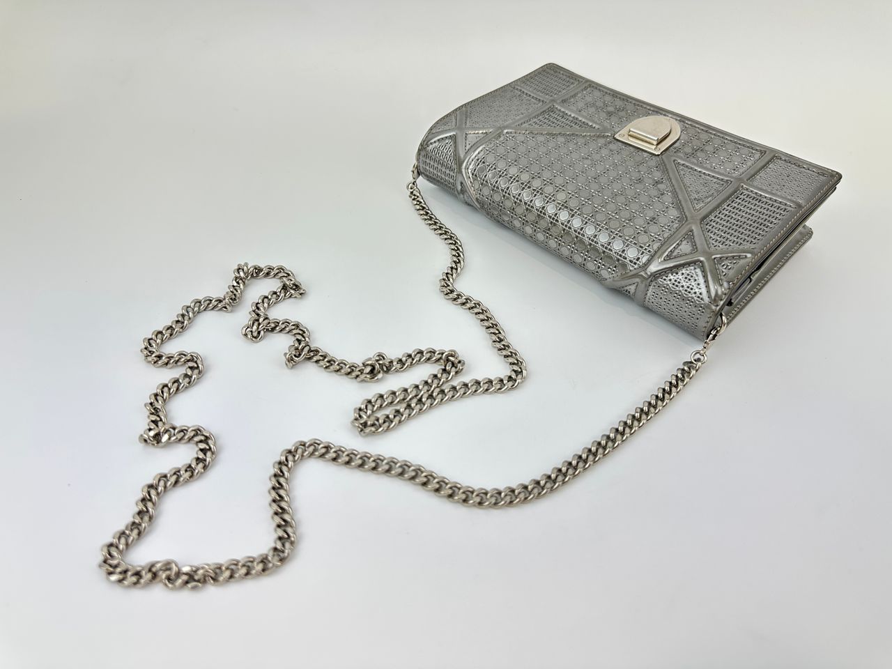 Diorama Metallic Silver Micro Cannage Diorama Wallet on Chain