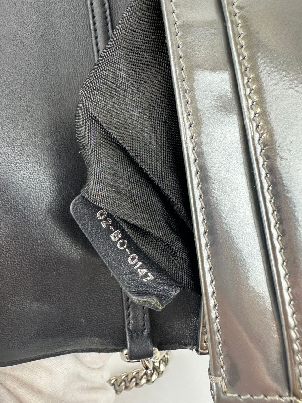 The Dior Diorama Wallet on Chain in metallic silver Micro Cannage exudes futuristic elegance while honoring the house’s couture heritage. Crafted from shimmering calfskin lacquered with Dior’s signature micro-cannage quilting, it’s finished with gleaming silver-tone hardware and a detachable leather-and-chain strap for versatile styling. Compact yet impeccably refined, this piece seamlessly transitions from an evening clutch to a day-to-night crossbody.