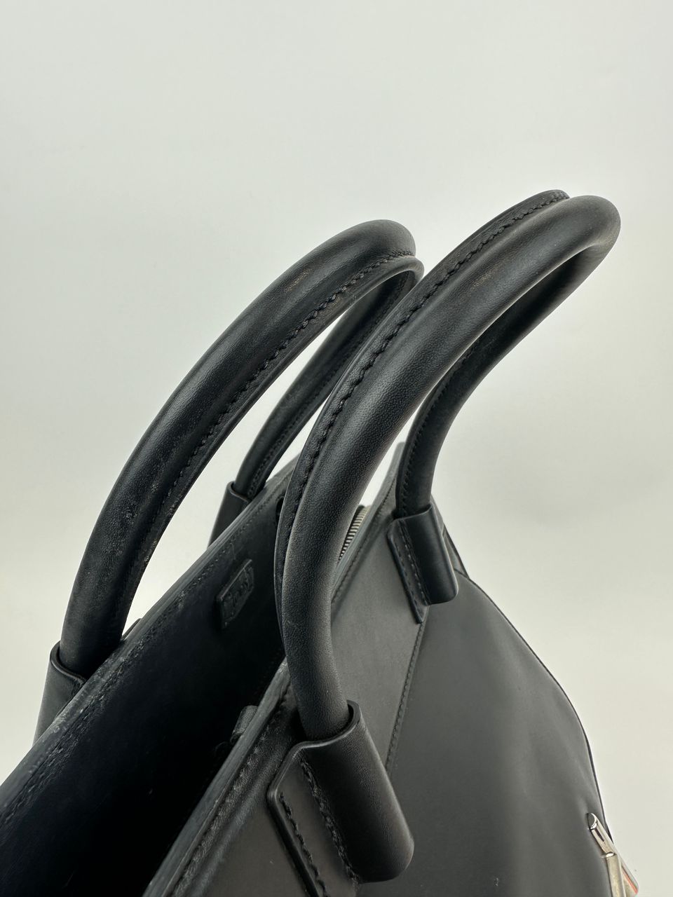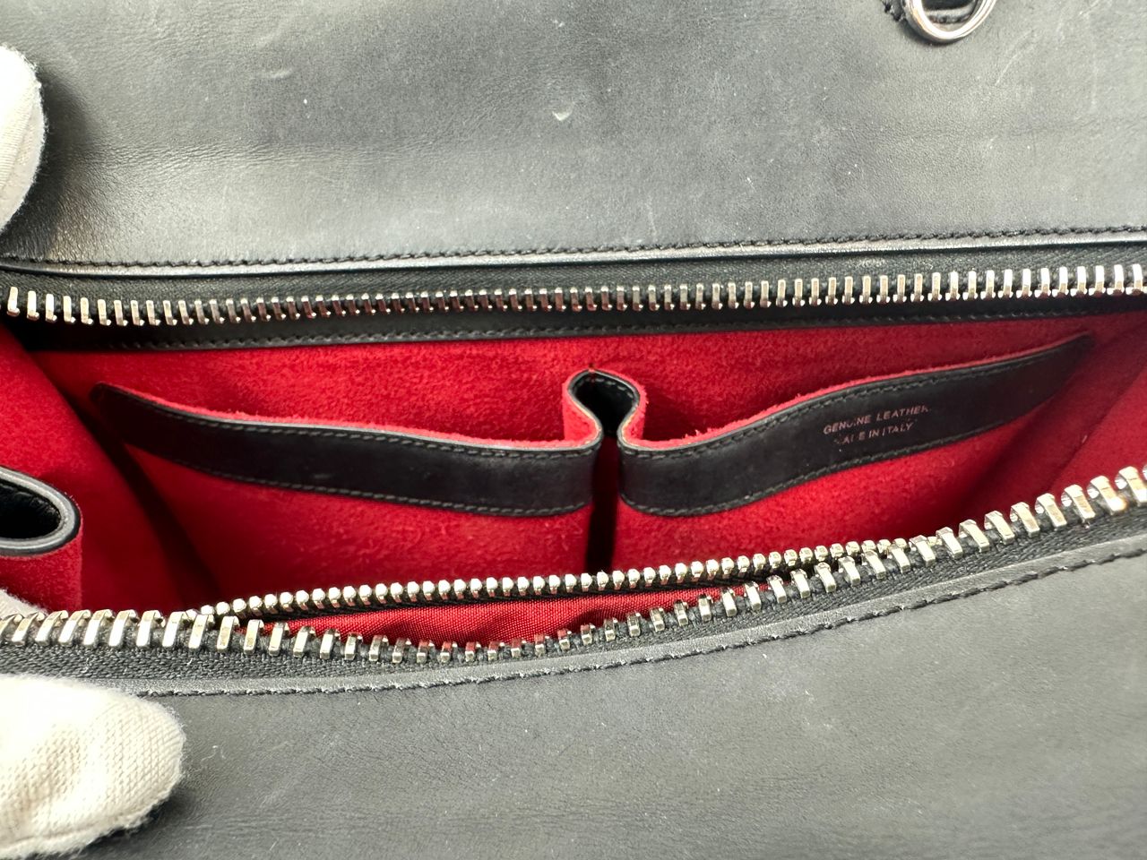 Elevate your everyday carry with this refined medium back satchel, crafted from supple double T grained black leather. The structured silhouette and classic design make it an effortless companion for professional settings and weekend excursions alike. Thoughtfully proportioned, this versatile piece accommodates your essentials while maintaining an understated elegance.
