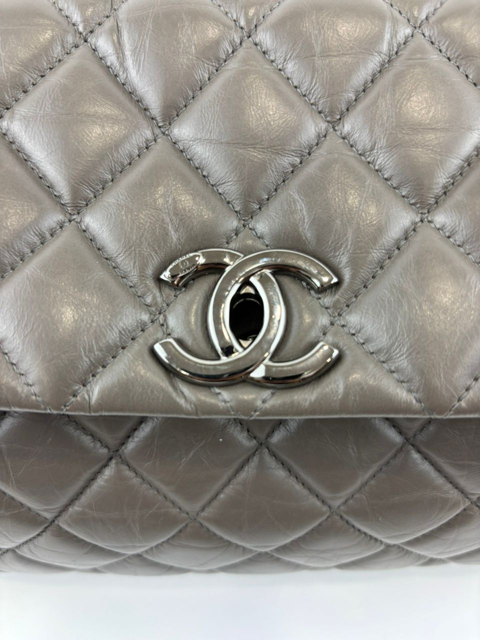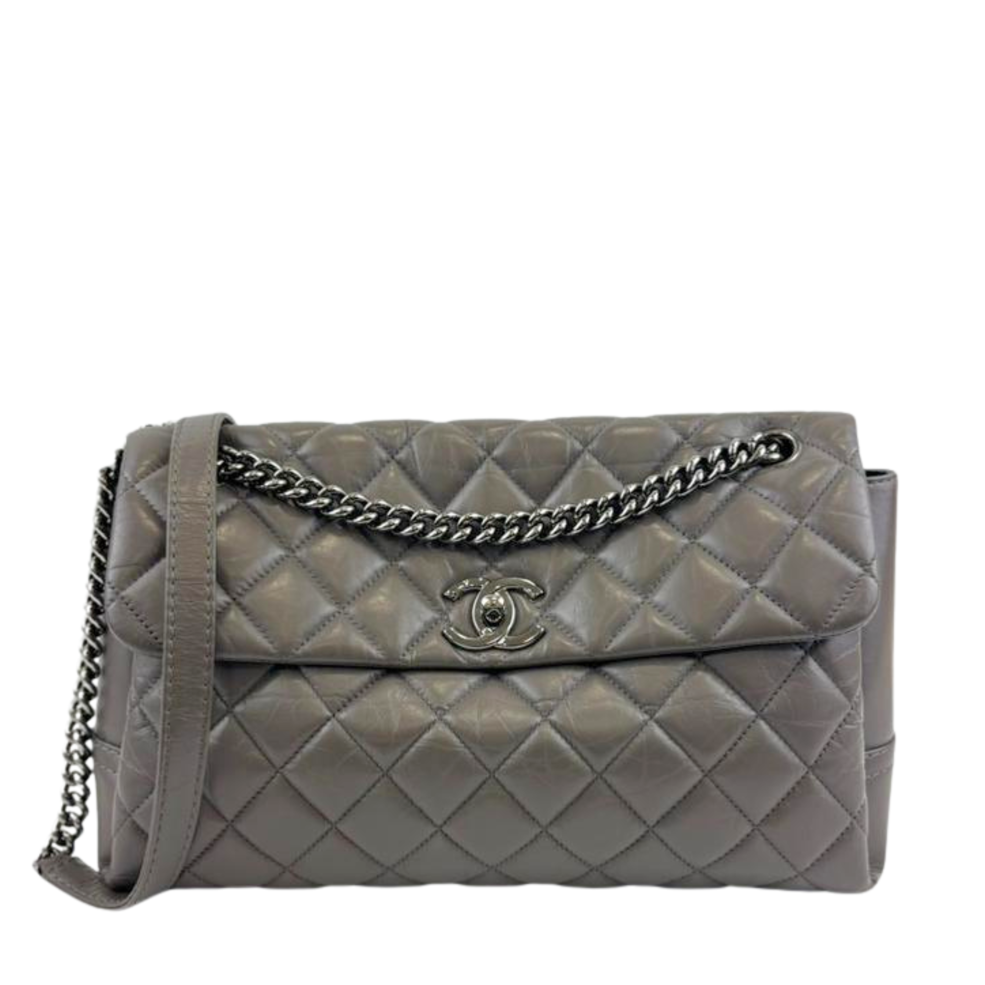 Lady Pearly Flap Bag in Grey Aged Quilted Calfskin SHW
