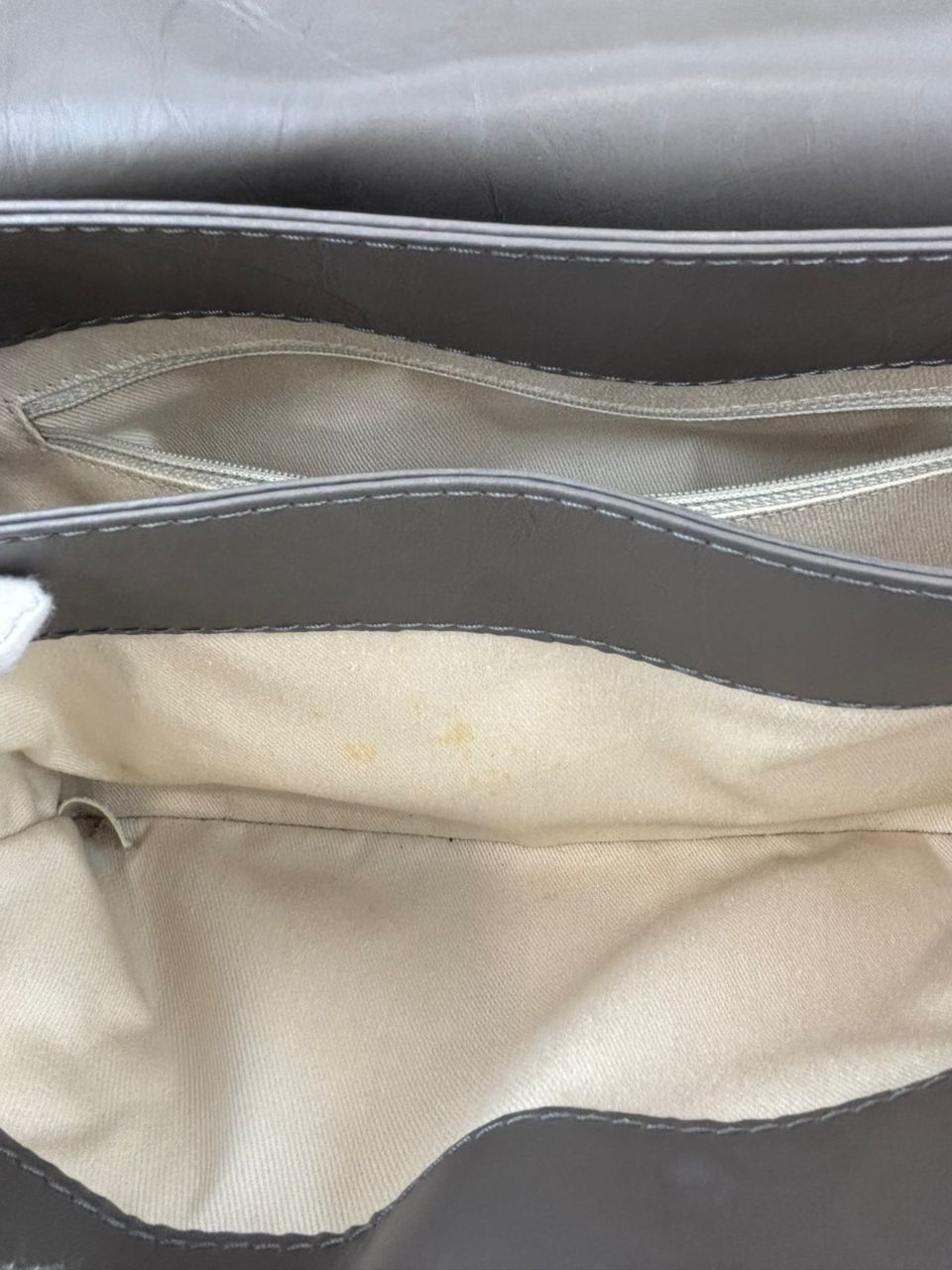 Remarks: Used in good condition, some signs of use; minor scuffs at the corners, minor dirt marks and yellow spots on interior, hairline scratches on hardware.