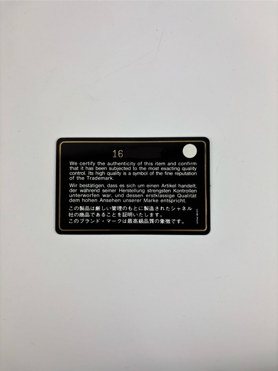 Includes: Auth card, hologram intact, dust bag, felt protector & care booklet