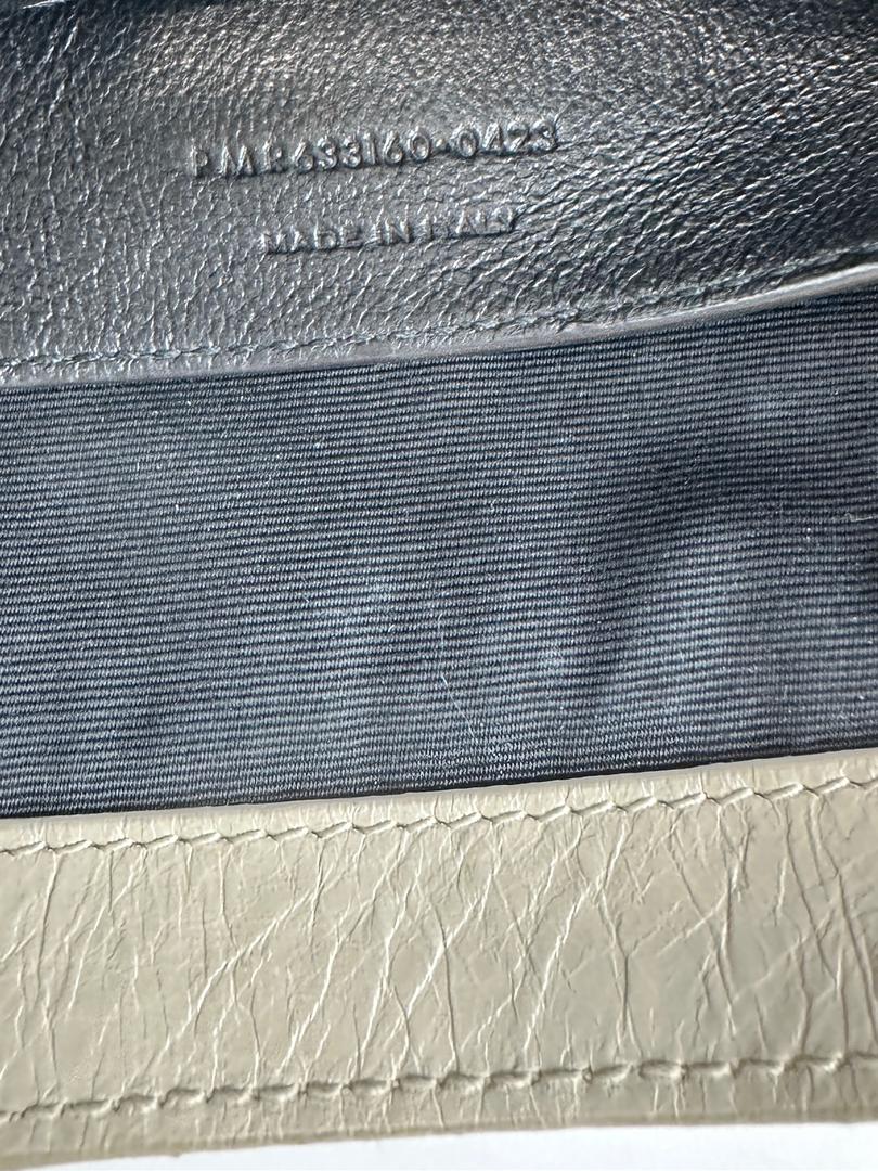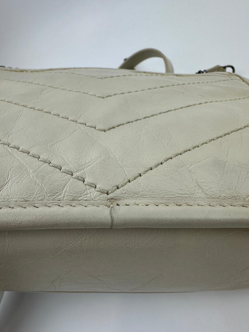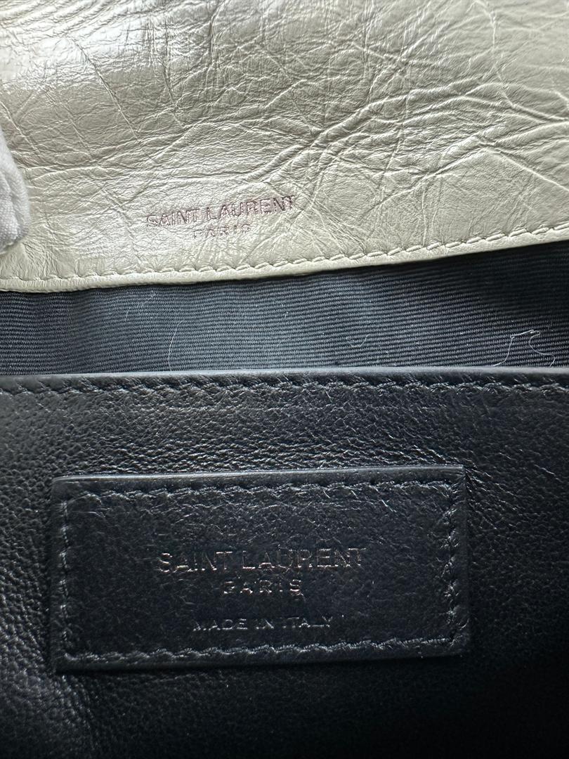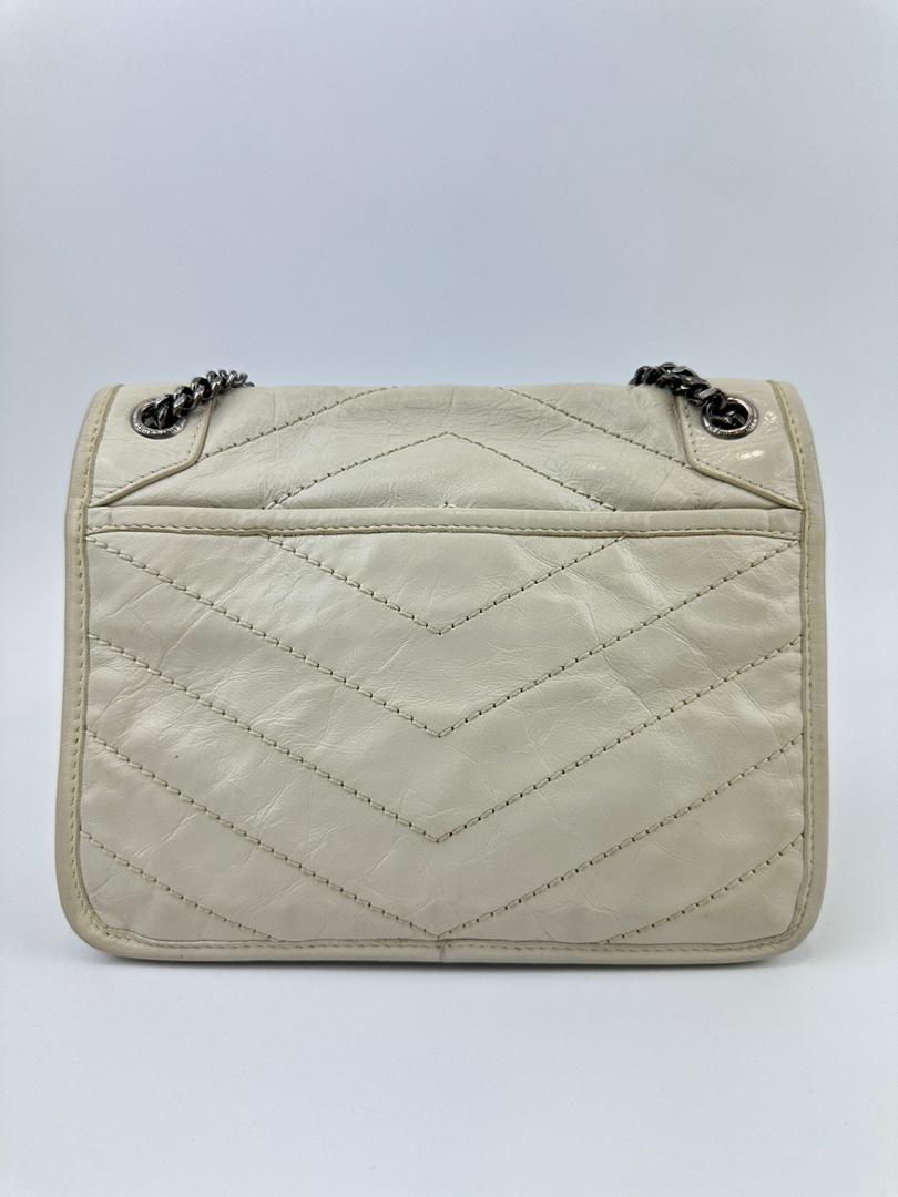 The Saint Laurent Baby Niki Bag is crafted in white crinkled calfskin leather for a chic, vintage-inspired look. Detailed with tonal hardware and the iconic YSL monogram, it combines understated elegance with modern edge. Compact yet practical, it’s the perfect everyday companion.