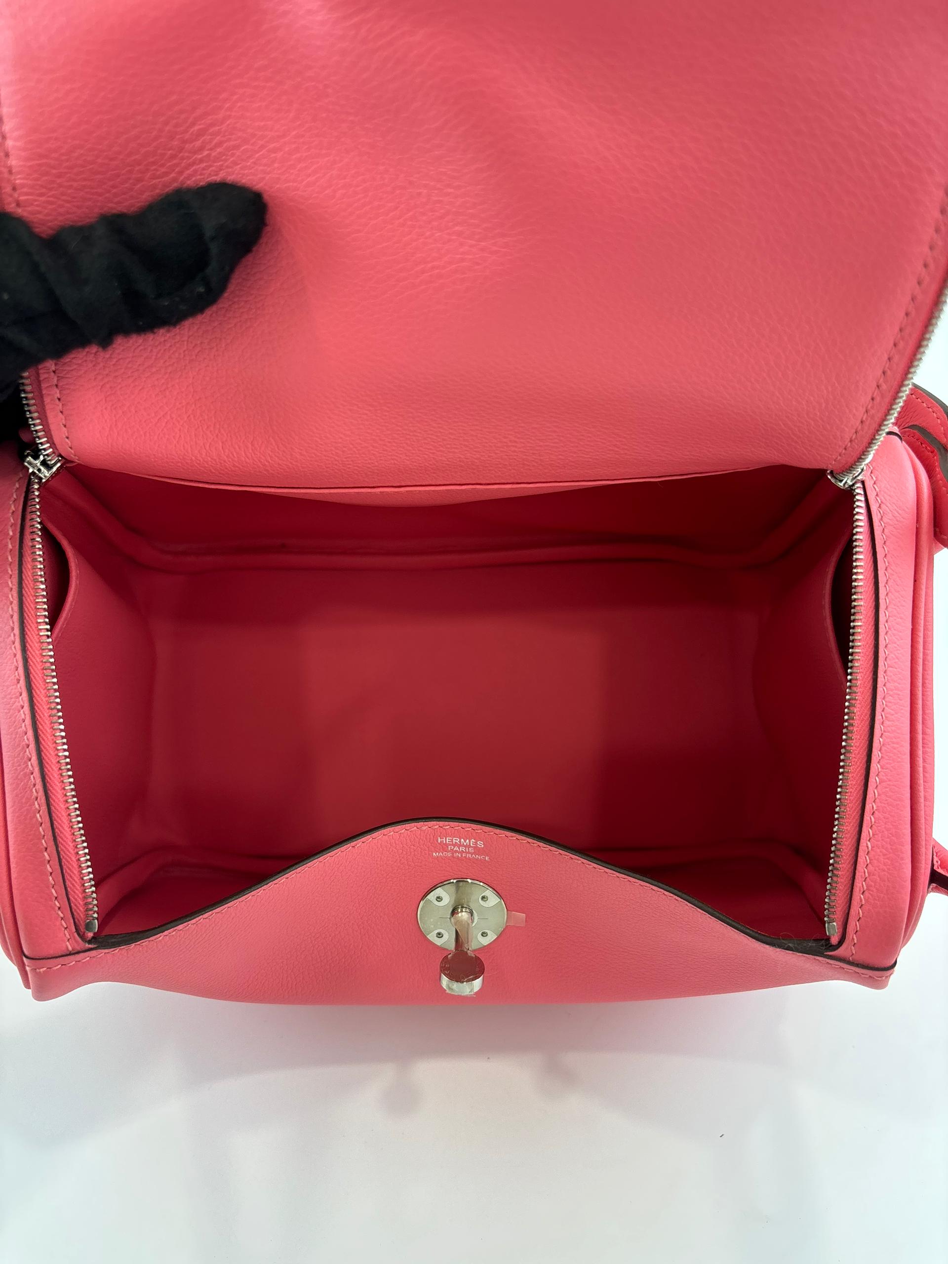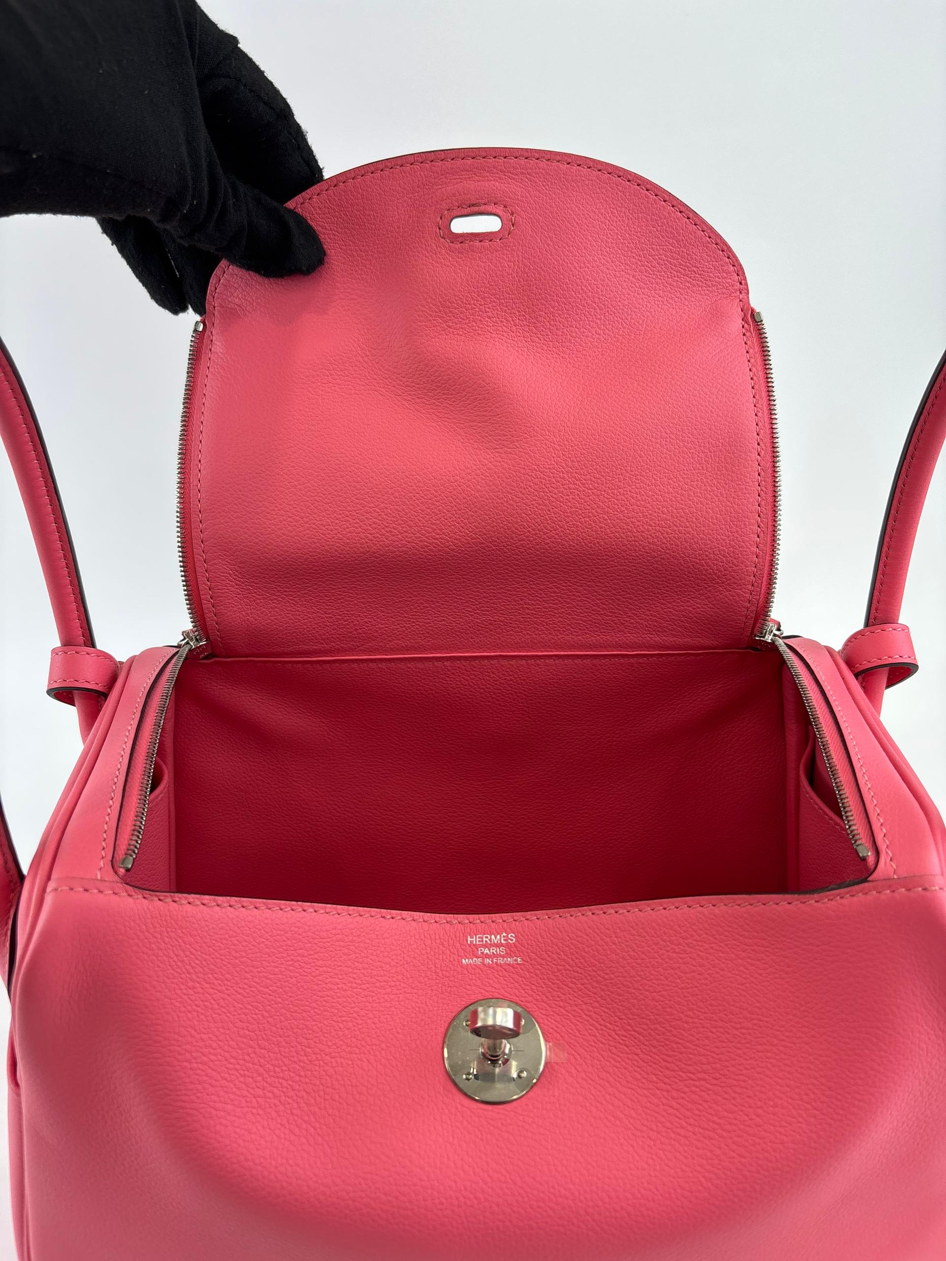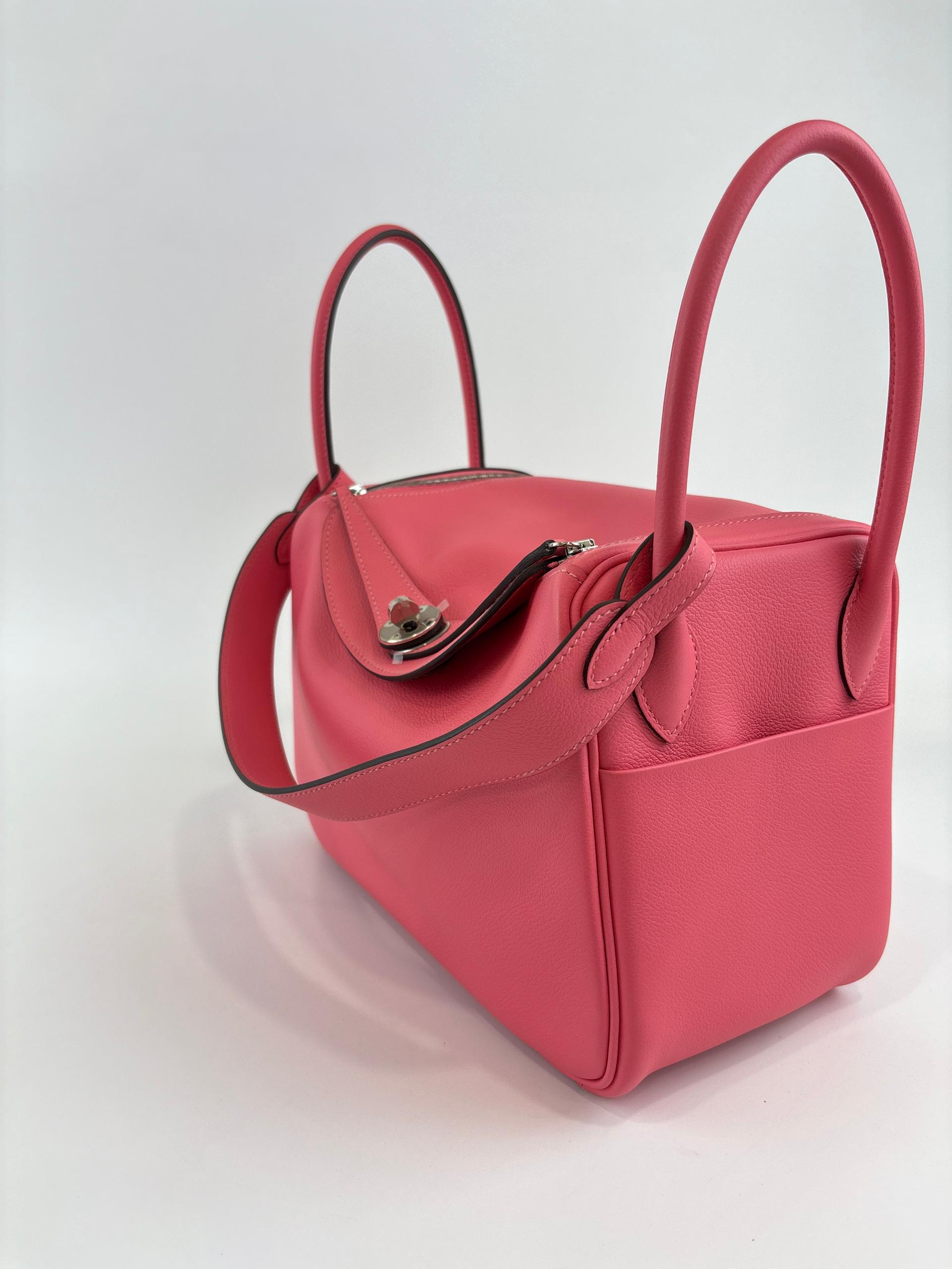 The Hermès Lindy 26 in Rose Azalée Evercolor with Palladium Hardware embodies refined elegance and practicality. Crafted from supple and durable Evercolor leather, it offers a smooth touch and lasting beauty. The compact 26 cm size ensures effortless carrying, while dual top handles and a detachable shoulder strap allow seamless transitions from hand-held to crossbody wear — making it both stylish and versatile.
