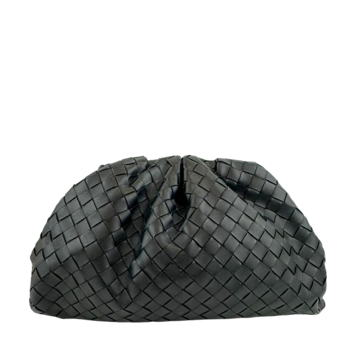 Bottega Veneta Large Intrecciato Black Calfskin Leather Clutch