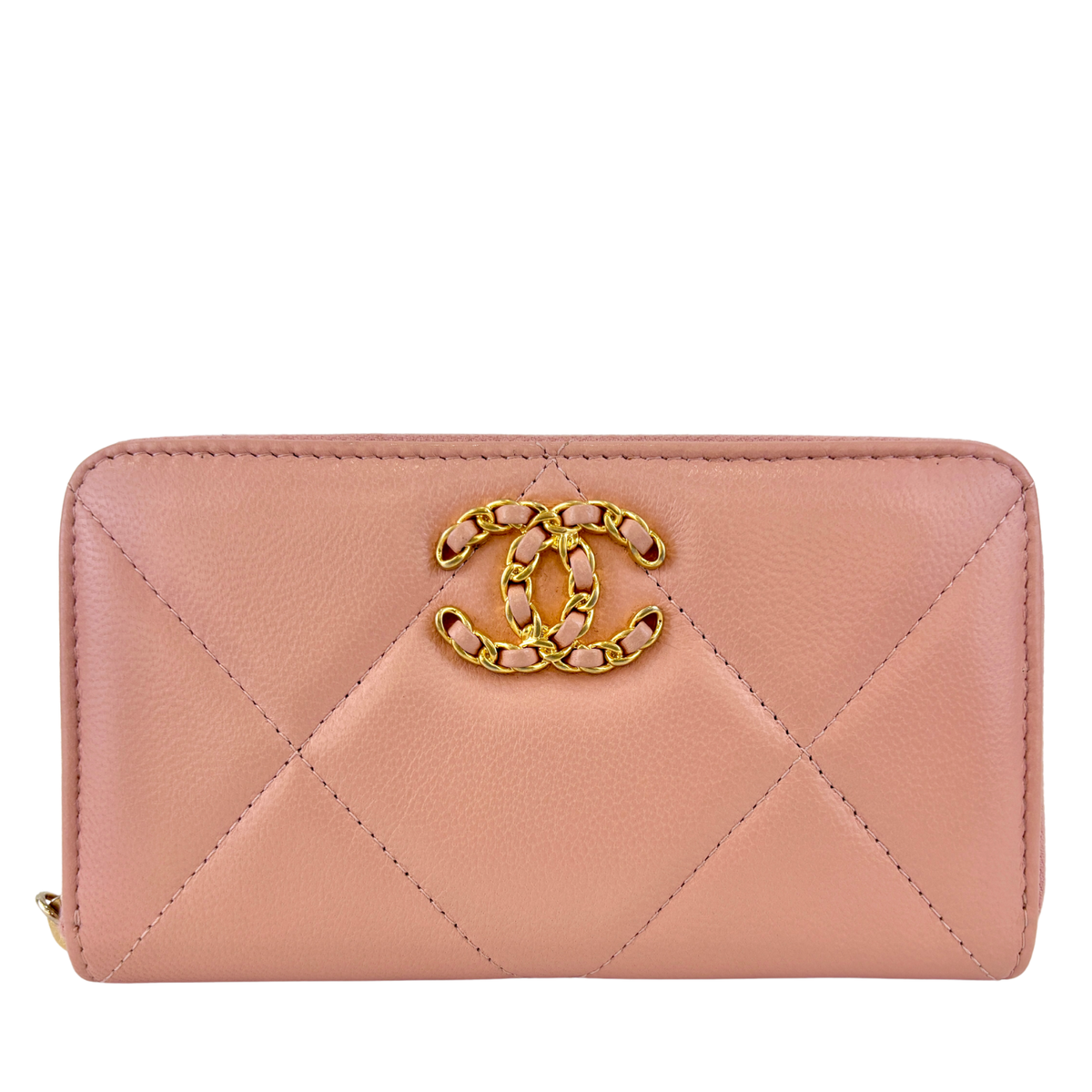 Chanel 19 Zip Around Long Wallet Quilted Lambskin in Light Pink GHW