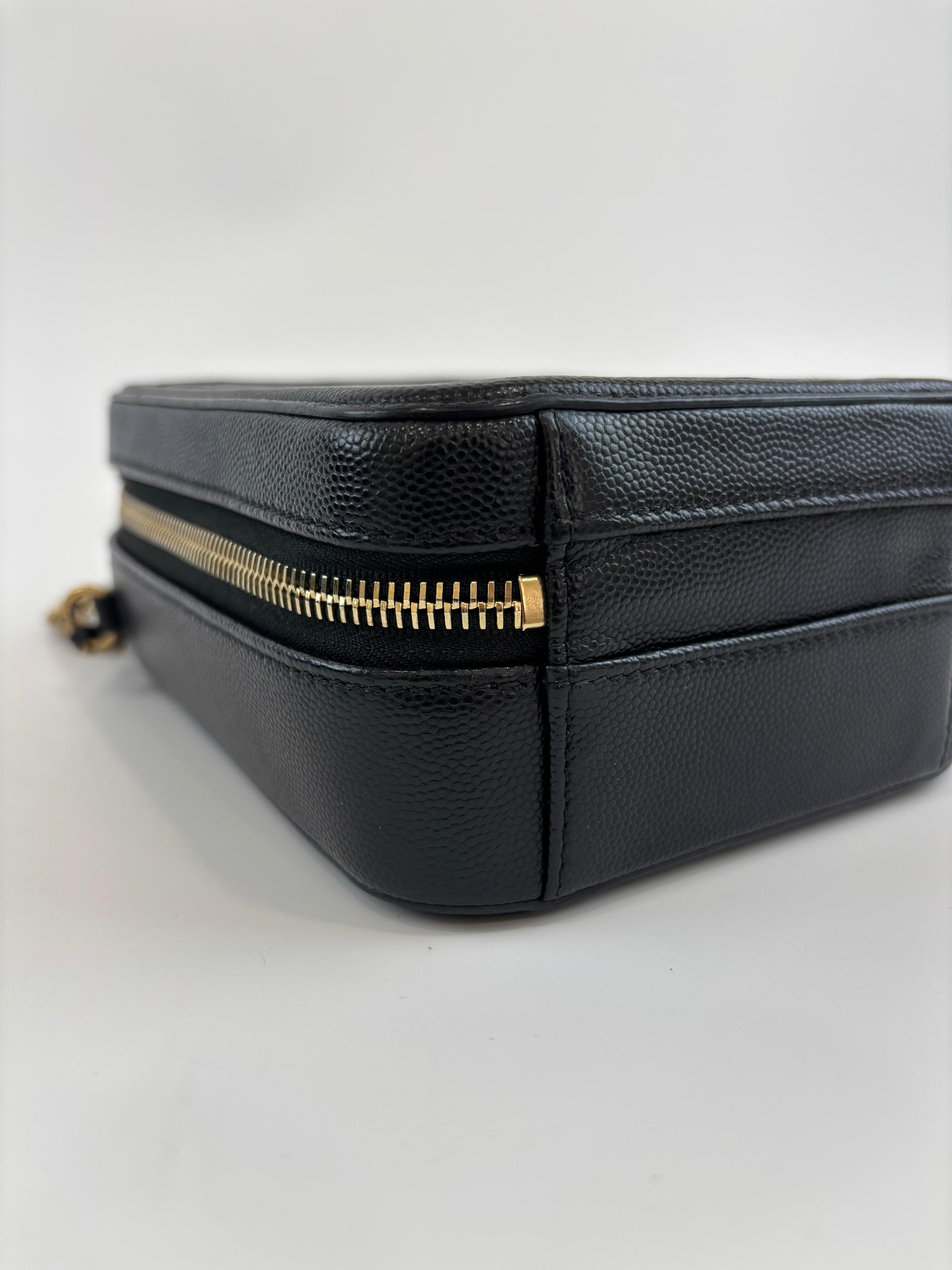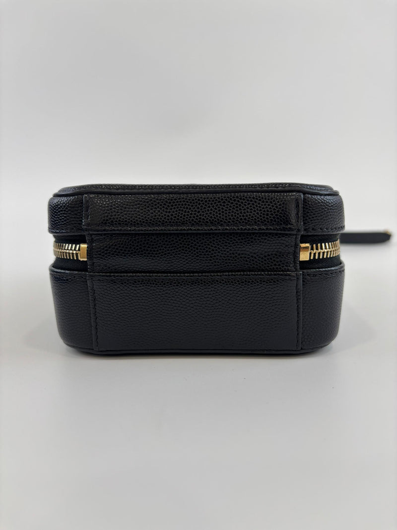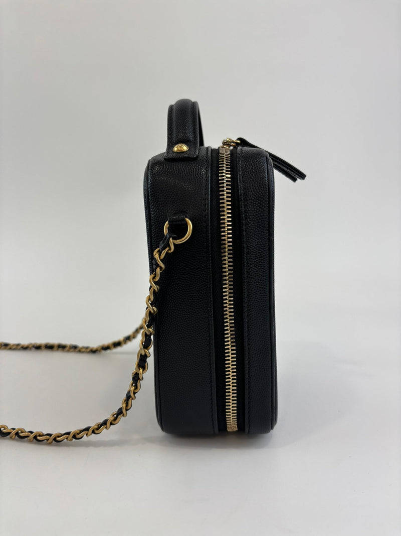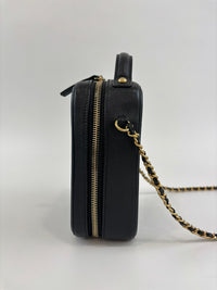 The Chanel Filigree Vertical Vanity Bag features an elegant vertical design adorned with delicate filigree patterns, showcasing exquisite craftsmanship. Its structured silhouette offers a refined and timeless look, perfect for carrying essentials with style. This sophisticated accessory blends classic charm with contemporary flair, making it an ideal choice for those who appreciate luxury and attention to detail.