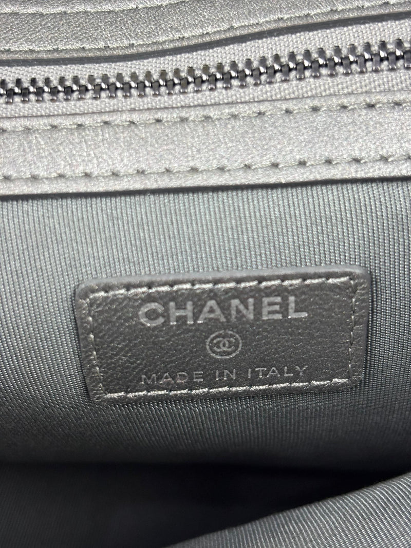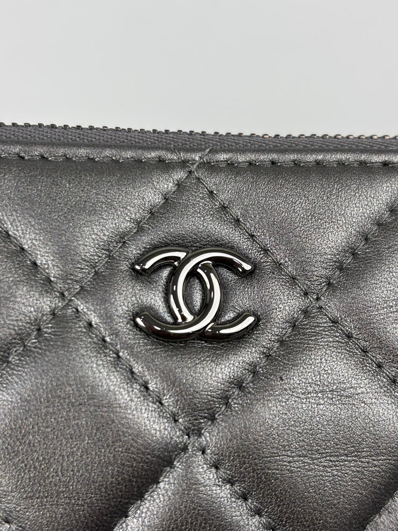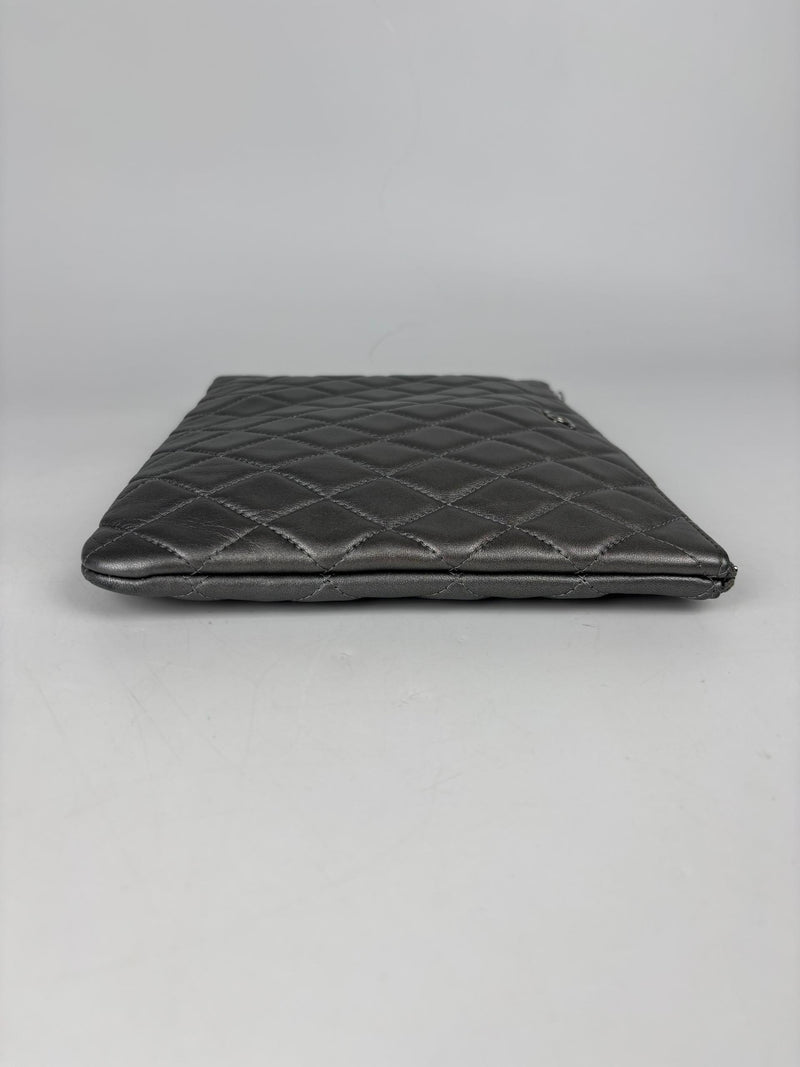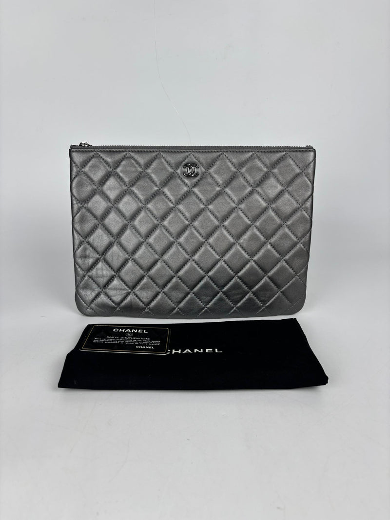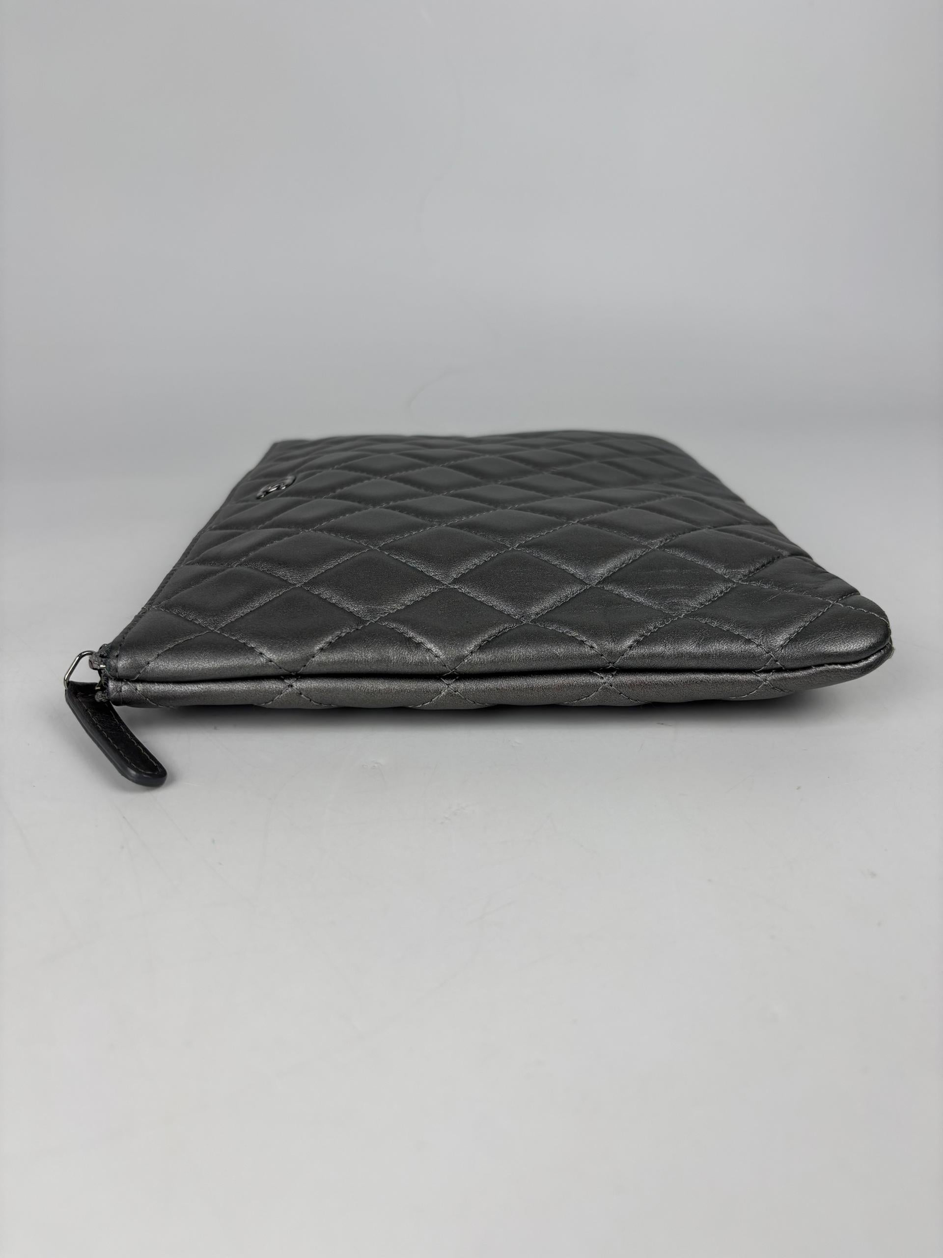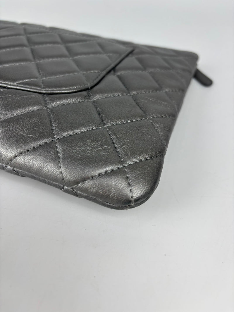 Crafted from luxurious grey lambskin leather, this Chanel Medium O Case Clutch features a signature quilted design that exudes timeless elegance. Versatile in function, it can be carried as a sleek clutch or used as a refined handbag organizer, seamlessly combining style with practicality for the sophisticated individual.