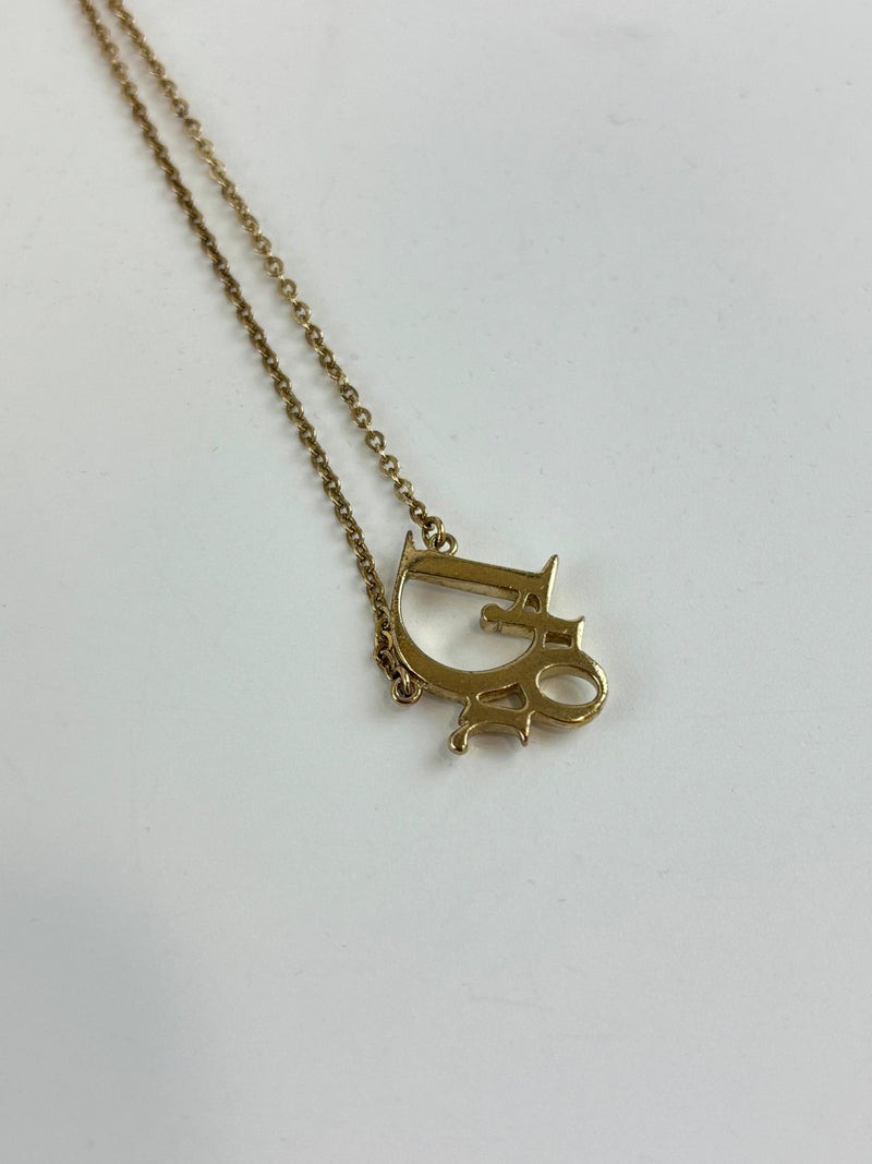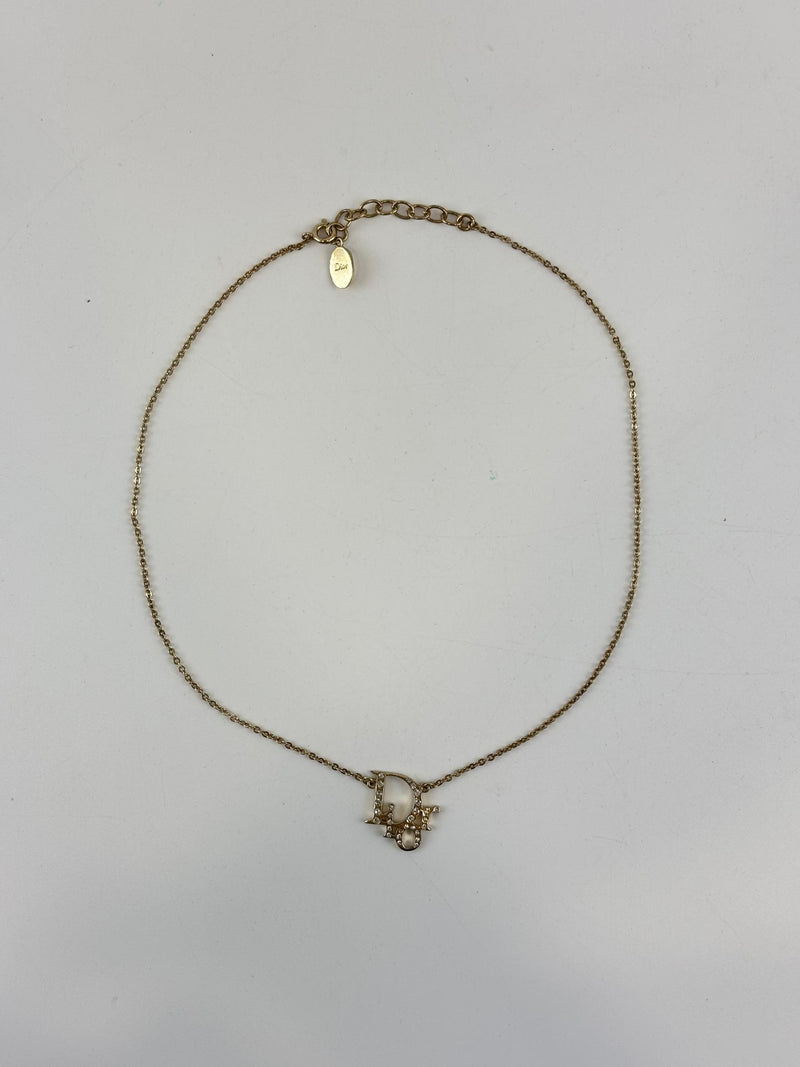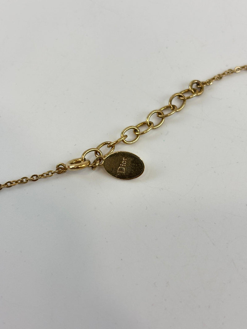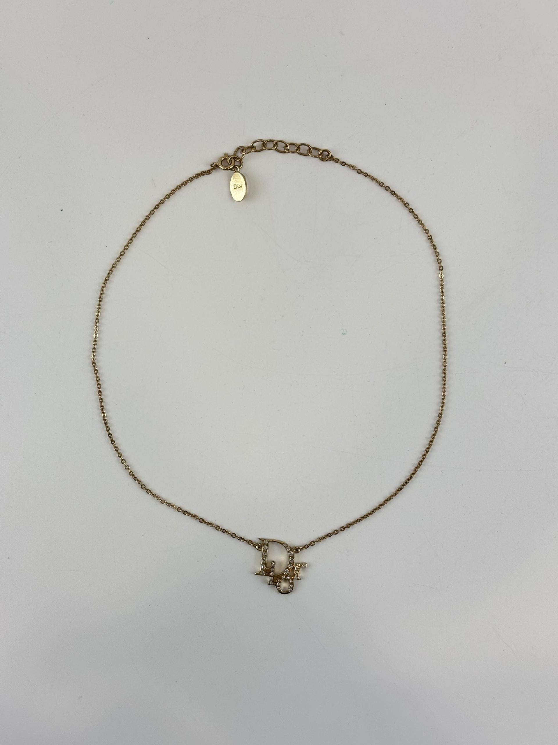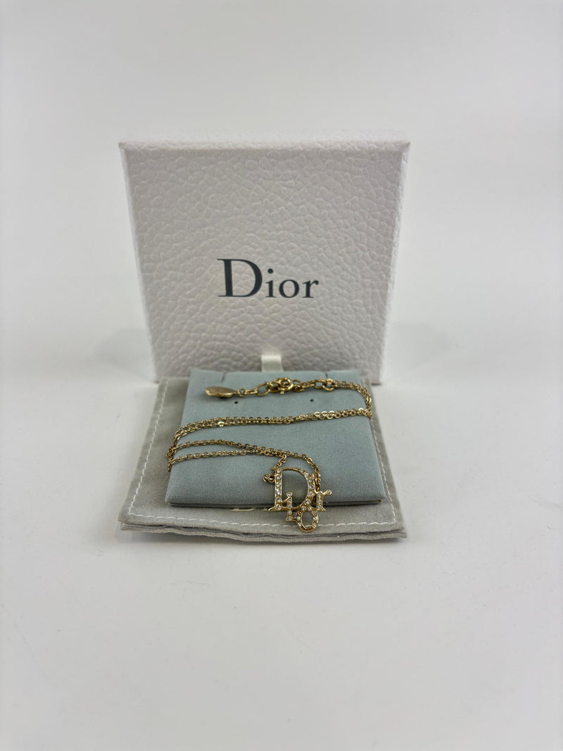 The Dior Crystal Oblique Pendant Necklace in gold tone embodies refined sophistication. Featuring a sleek pendant embellished with sparkling crystals, it offers a subtle yet striking accent to any outfit. Crafted with attention to detail, this necklace adds a touch of timeless luxury, perfect for elevating your everyday style or complementing special occasions.