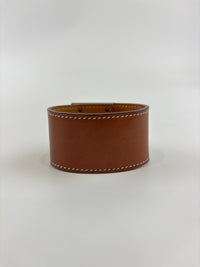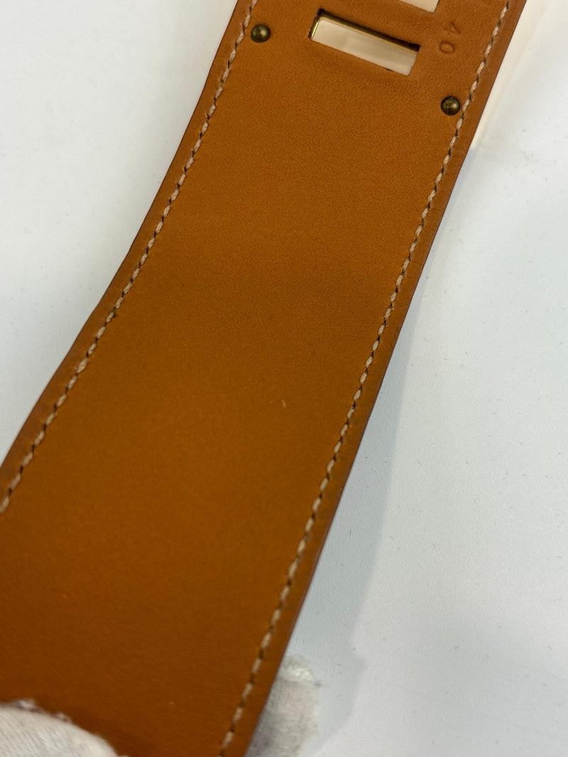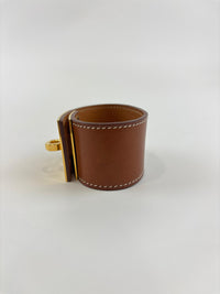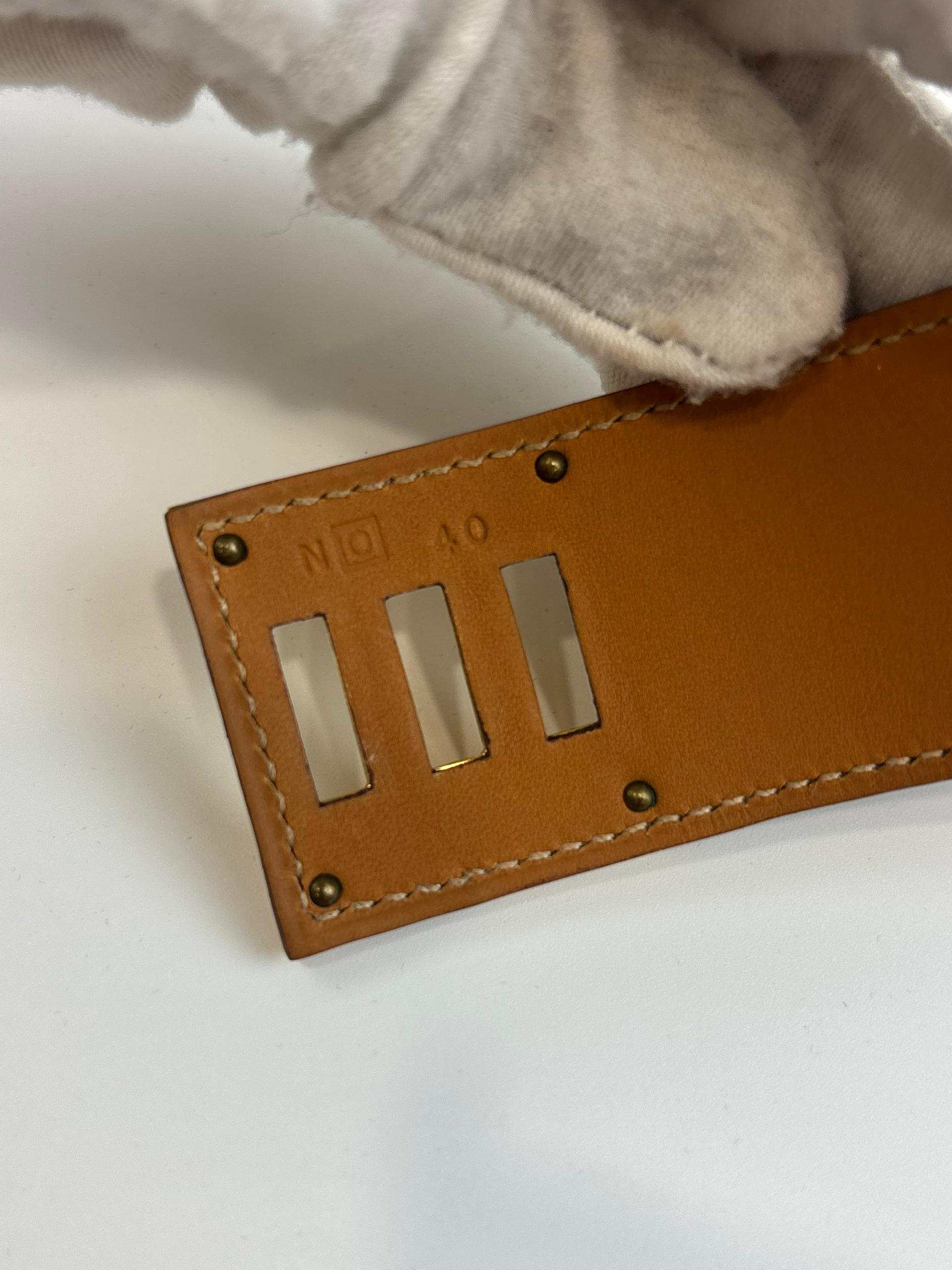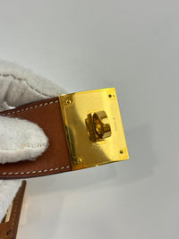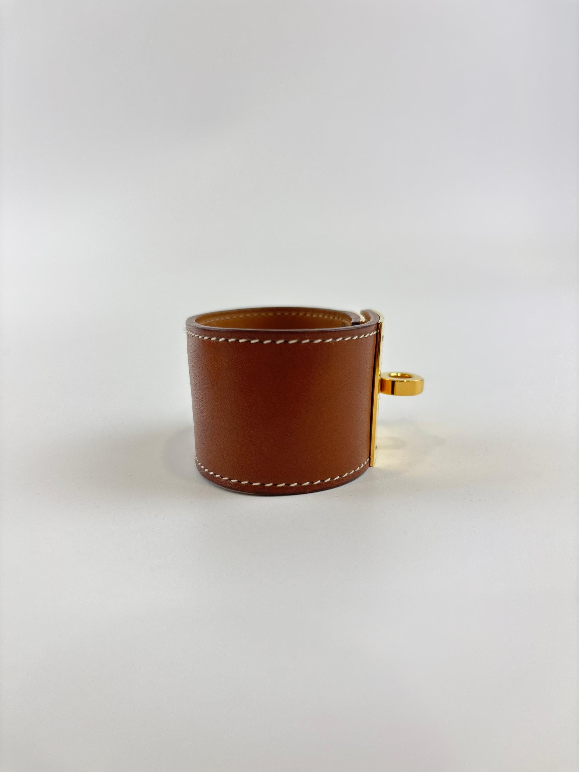 Elevate your accessory collection with the Hermes Kelly Dog Bracelet in Gold Swift leather, featuring gleaming gold hardware. This refined piece combines timeless elegance with modern craftsmanship, offering a subtle yet striking statement. Its sleek design and luxurious materials make it perfect for adding a touch of sophistication to any ensemble.