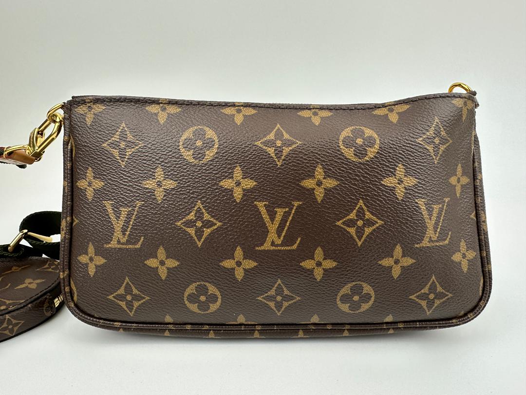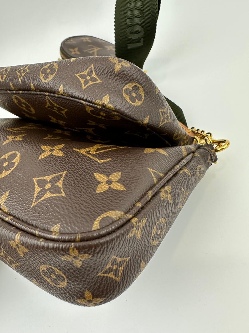 The Louis Vuitton Multi Pochette Accessoires combines fashion and function in one dynamic design. Made from Monogram canvas with natural leather trim, it features two removable pouches, a round coin purse, and a khaki adjustable strap. A playful yet practical piece that’s as versatile as it is iconic.