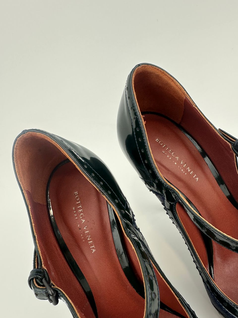 Heeled Mary Jane & Perforated Details in Black Shiny Leather Size 37