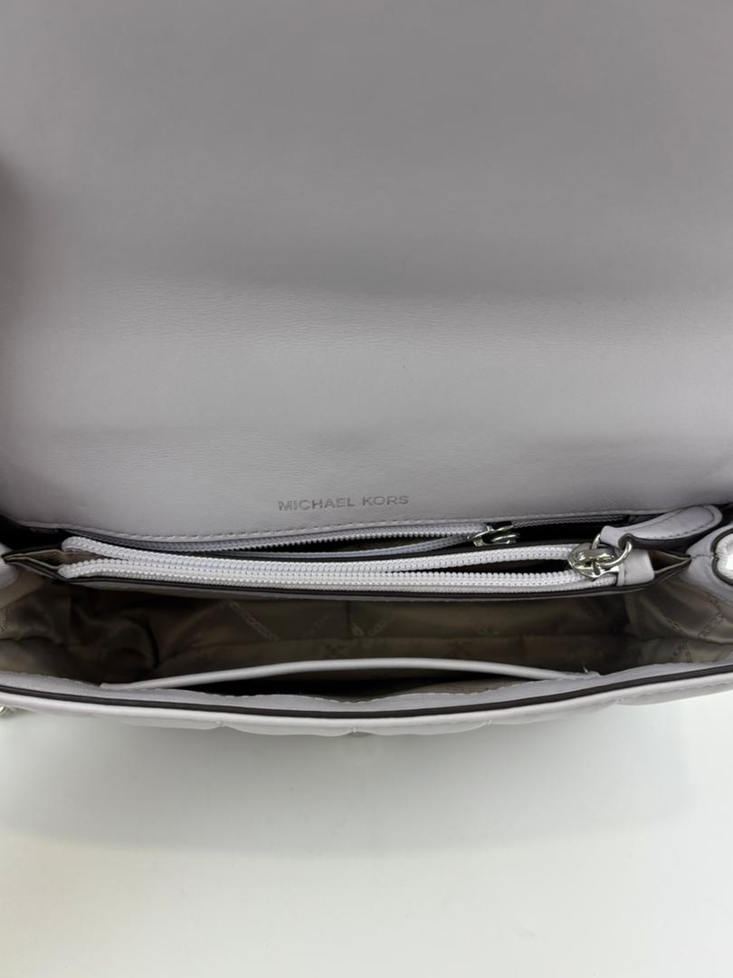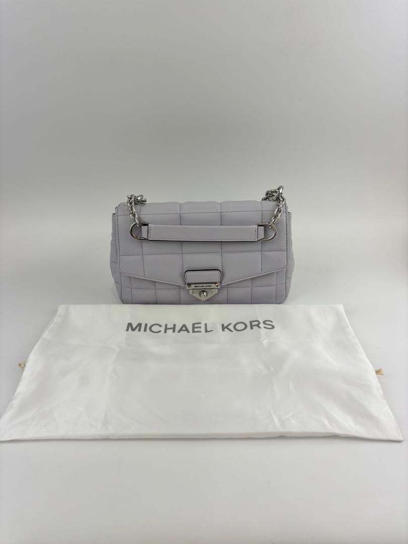 Elevate your ensemble with the Michael Kors SoHo Large Quilted Leather Shoulder Bag in a delicate lilac hue. Crafted from supple quilted leather, it offers spacious functionality while exuding timeless elegance. Designed for the modern sophisticate, this shoulder bag combines refined style with practicality, making it a versatile accessory for both day and evening looks.