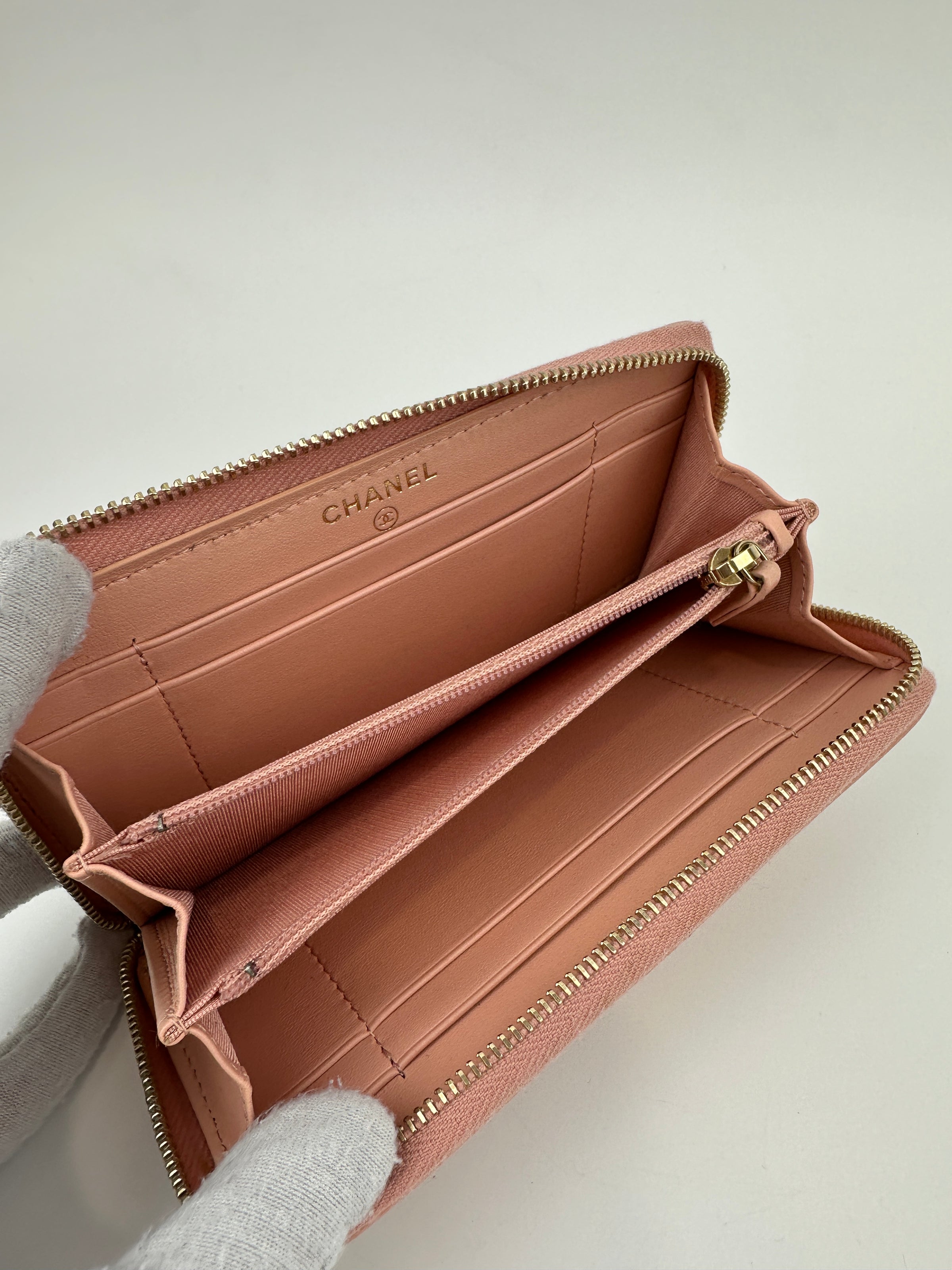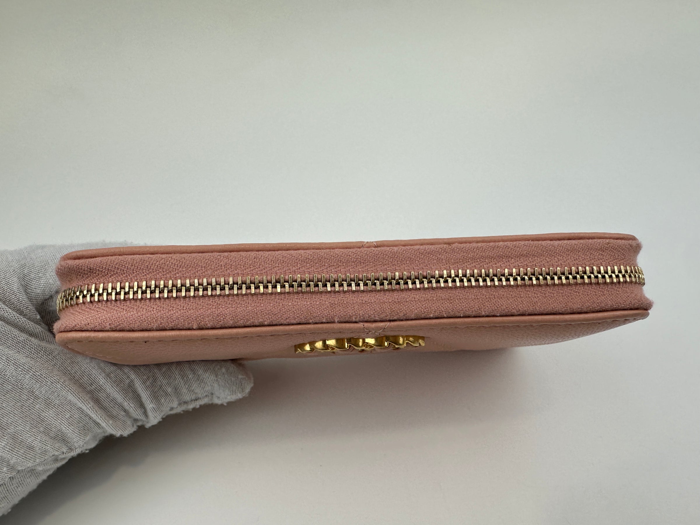 19 Zip Around Long Wallet Quilted Lambskin in Light Pink GHW